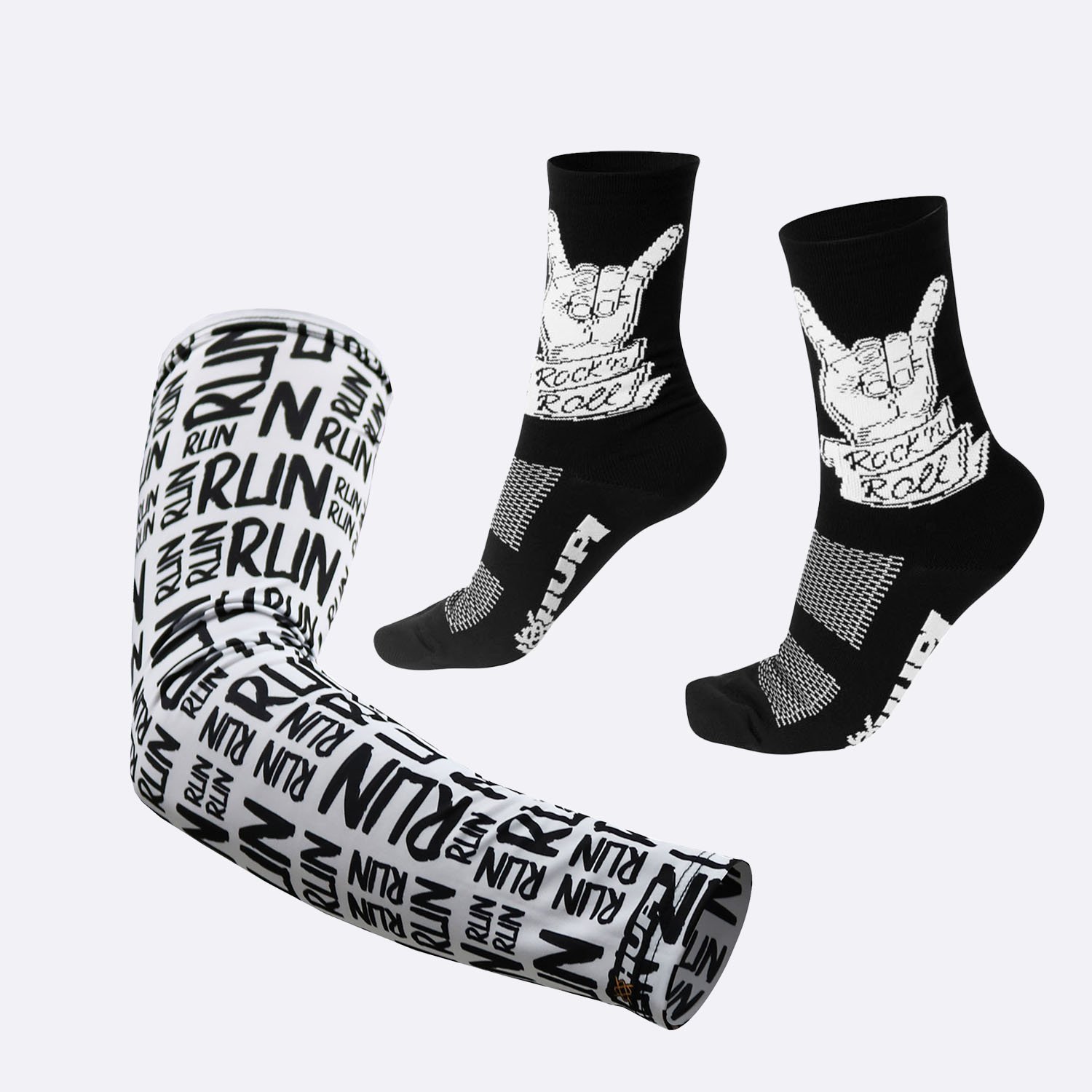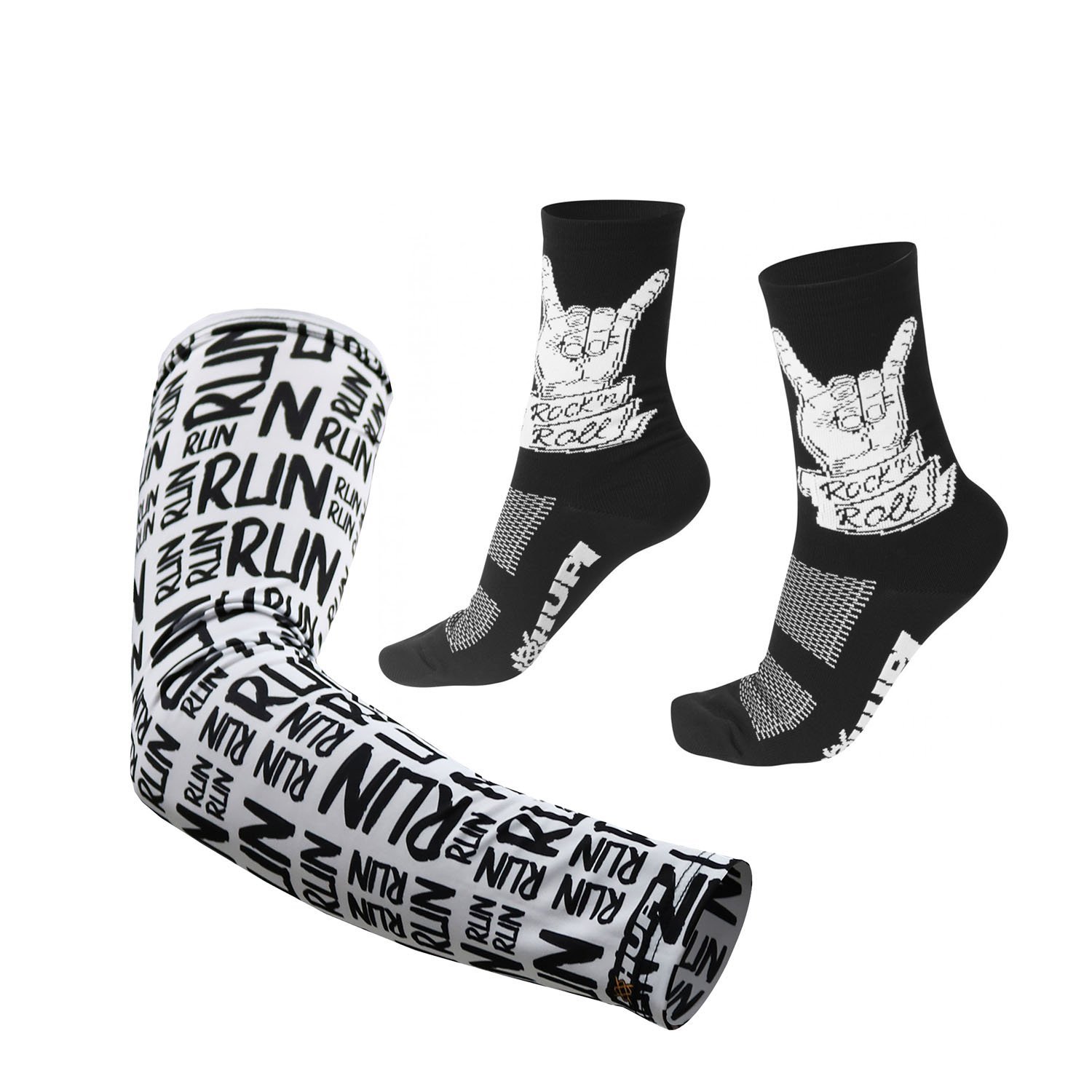 Kit Manguito HUPI Run Branco e Meia HUPI Rock N Roll Preto