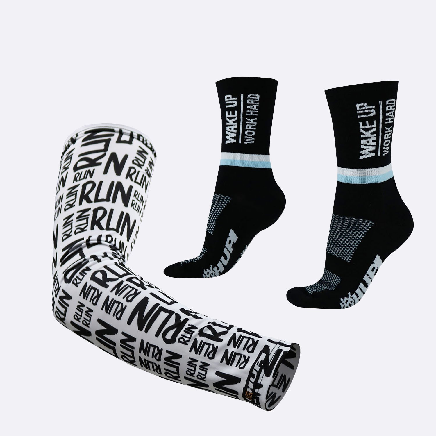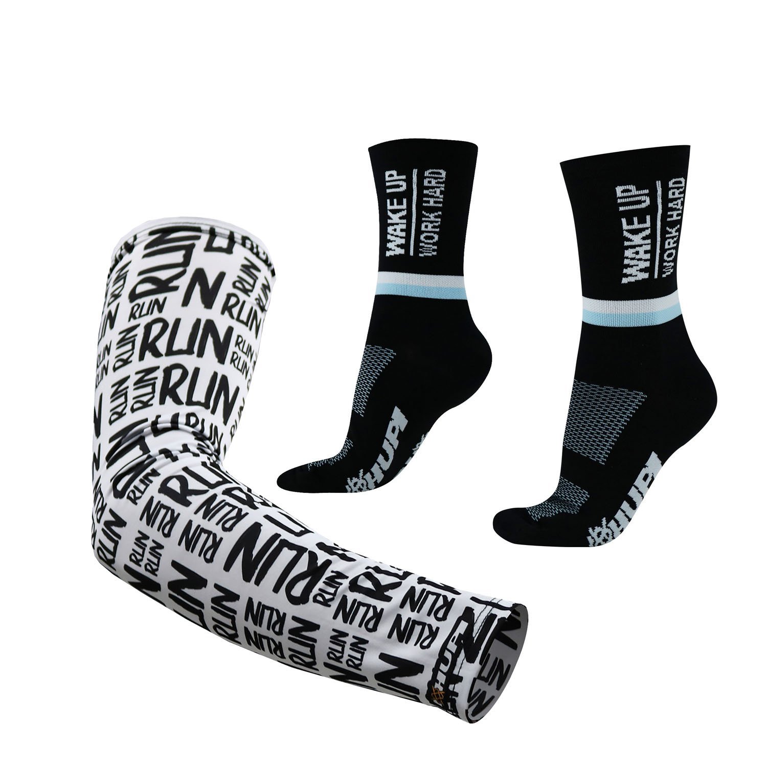 Kit Manguito HUPI Run Branco e Meia HUPI Wake Up Preto/Branco