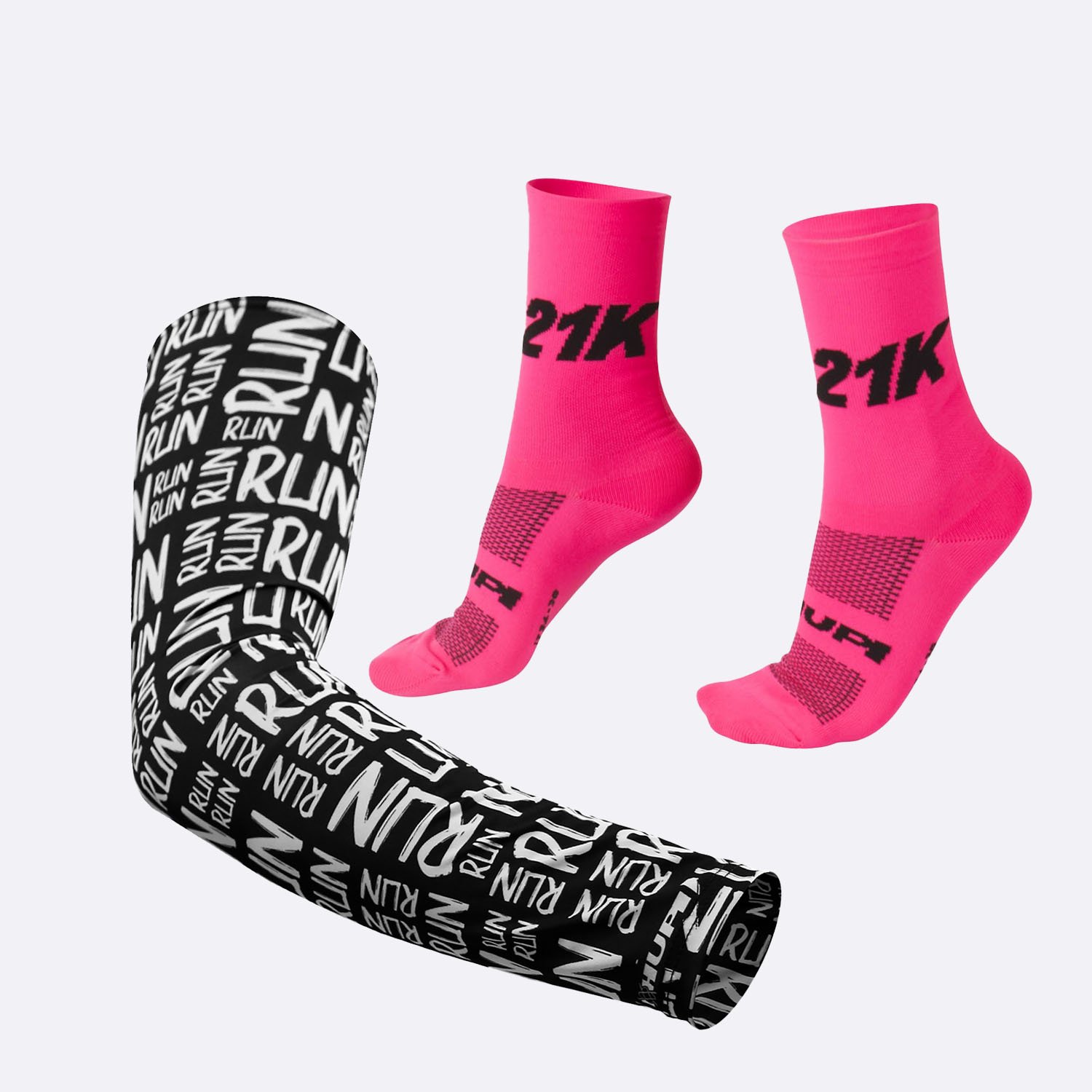 Kit Manguito HUPI Run Preto e Meia HUPI 21K Rosa - LT para pés menores 34-38