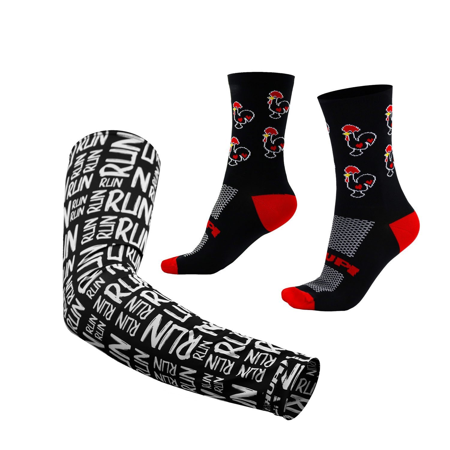 Kit Manguito HUPI Run Preto e Meia HUPI Galo Preto