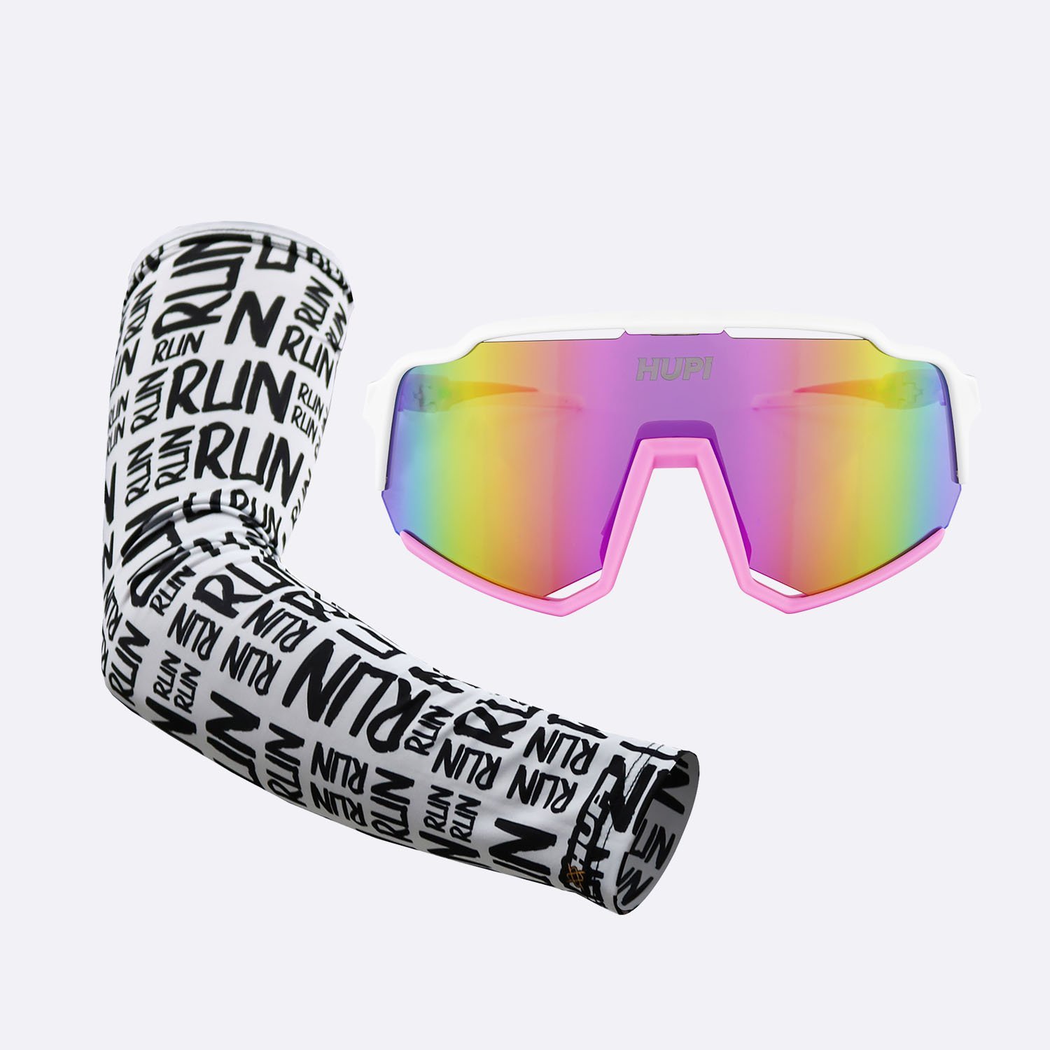 Kit Manguito HUPI Run Preto Proteção UV50+ e Óculos de Sol HUPI Brisa Branco/Rosa - Lente Rosa Espelhado