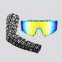 Kit Manguito HUPI Run Preto Proteção UV50+ e Óculos de Sol HUPI Vapor Azul e Branco - Lente Dourado Espelhado