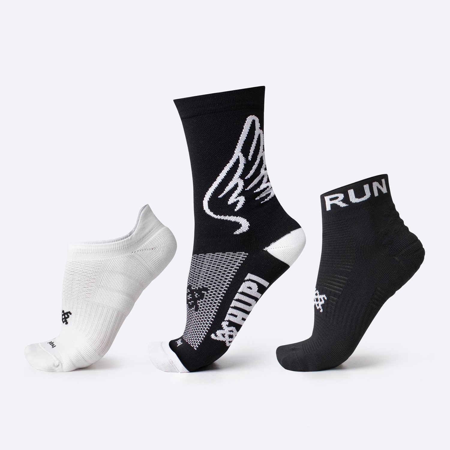 Com três modelos versáteis, Meia Running Pro Run Preta (cano curto), Meia HUPI Asas Preta (cano médio) e Meia Running Pro Invisível Branca, esse combo traz tudo que você precisa para treinar com estilo e performance do início ao fim.