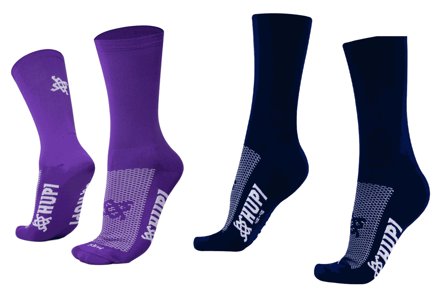 Especificações Técnicas do Kit Meia HUPI Corrida Ciclismo com 02 Pares Roxo e Azul