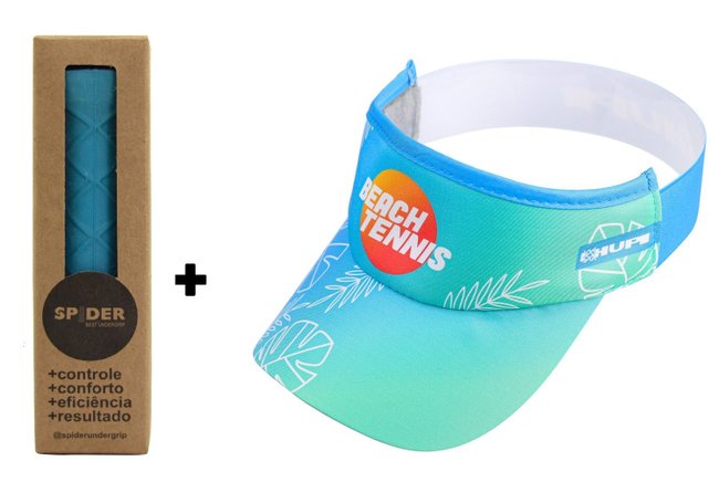 Kit Contém 01 Undergrip Spider Grip De Borracha Beach Tennis Padel Azul + Viseira Beach Tennis HUPI Blue