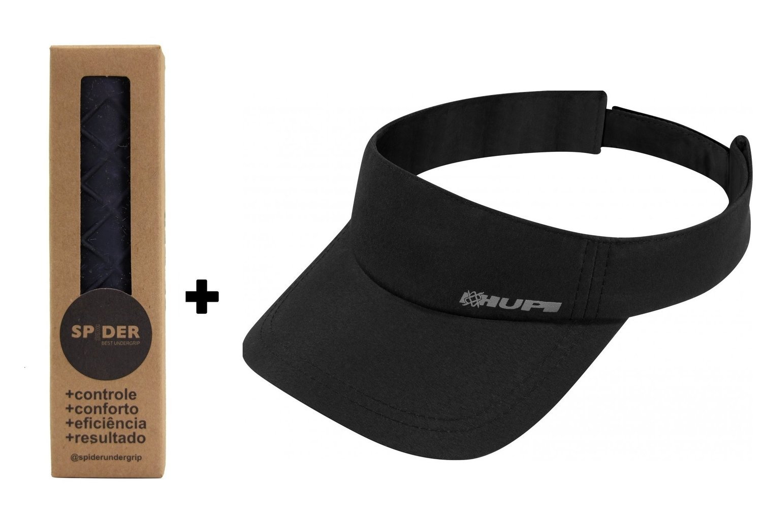 Kit Contém 01 Undergrip Spider Grip De Borracha Beach Tennis Padel Preto + Viseira Beach Tennis Microfibra HUPI Preta