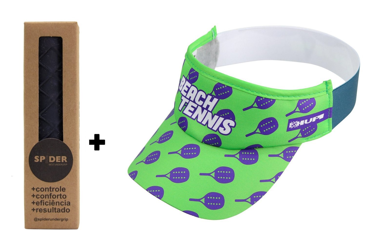 Kit Contém 01 Undergrip Spider Grip De Borracha Beach Tennis Padel Preto + Viseira Beach Tennis HUPI Verde