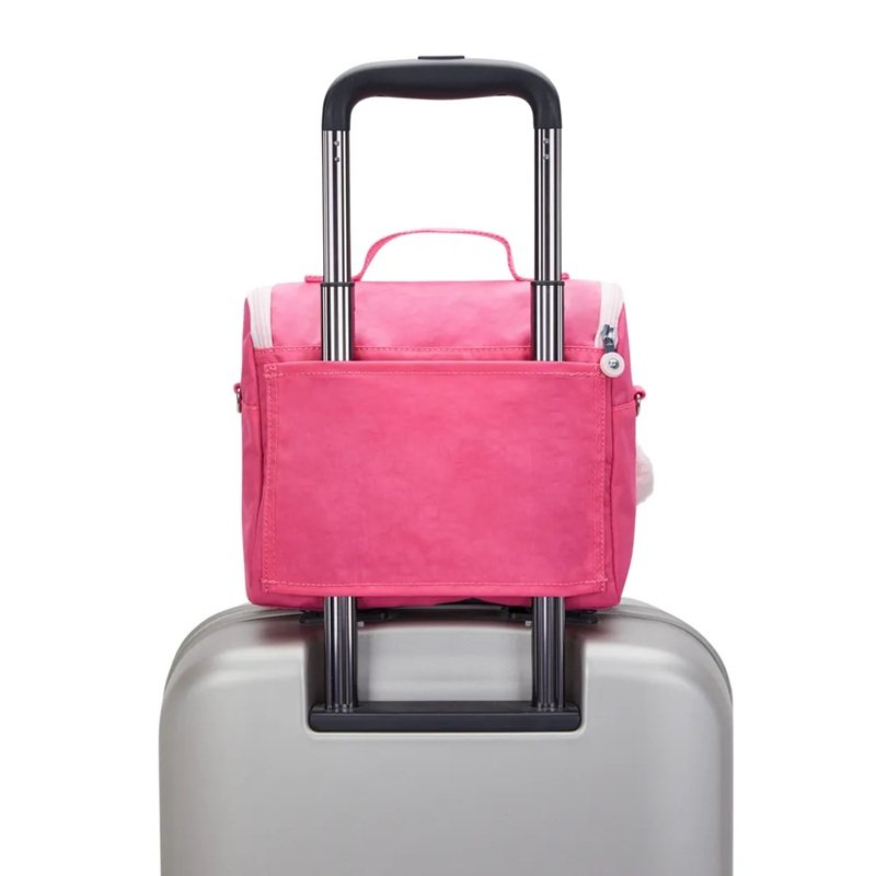 A alça de mão facilita o transporte, permitindo levar a lancheira de forma prática ou acomodá-la dentro de mochilas e bolsas maiores. Tudo isso reforça a funcionalidade do produto, sem comprometer o estilo característico da Kipling.
