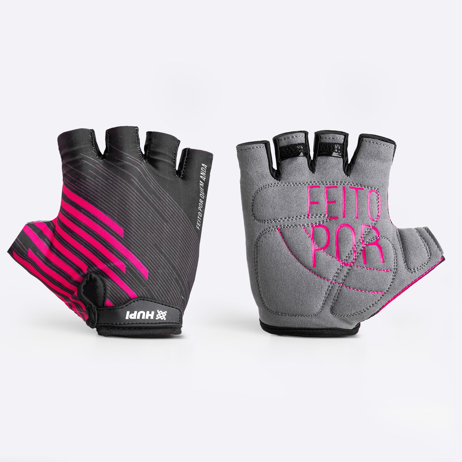 Luva Ciclismo HUPI Eco Dedo Curto Lines Pink