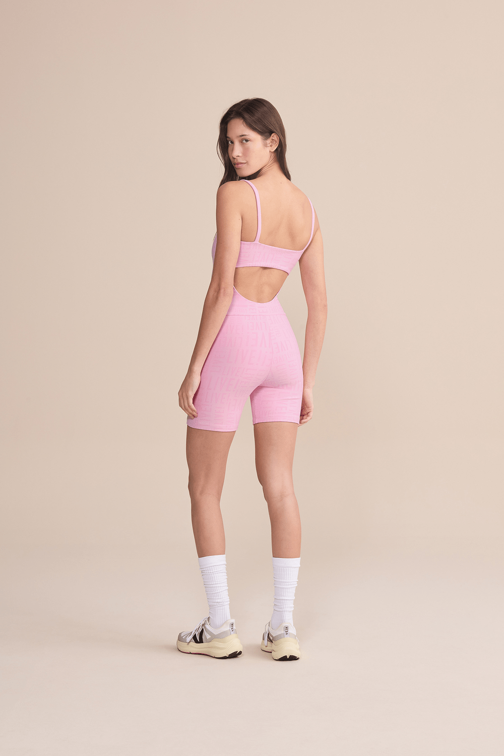 Como Usar o Macaquinho Shorts Sense Pro Rosa Claro?