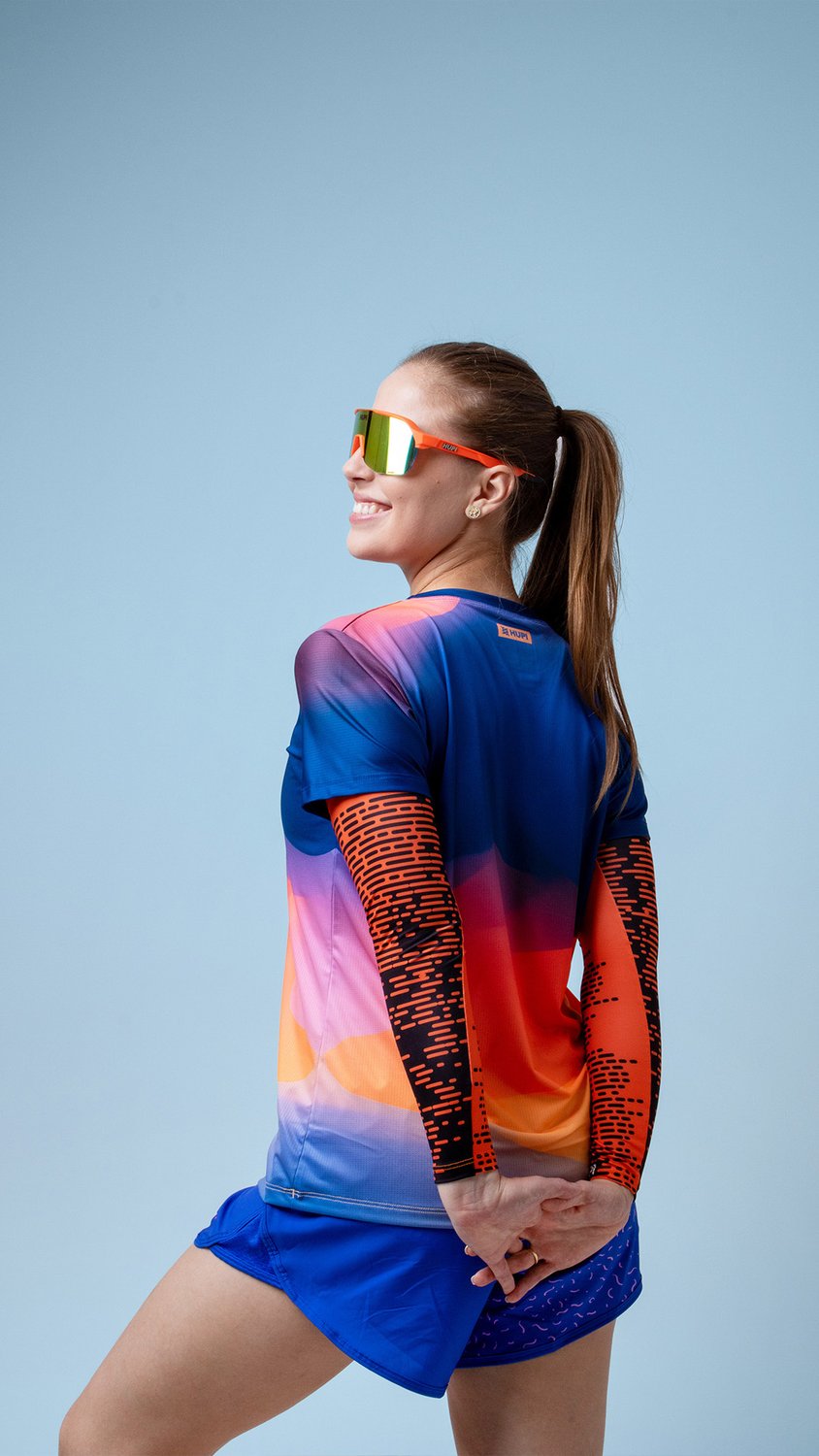 Seja para pedalar ou correr, usamos tecidos e sublimação de primeira linha, com controle de temperatura e com o sistema Dry, que afasta o suor da pele mantendo ela seca.