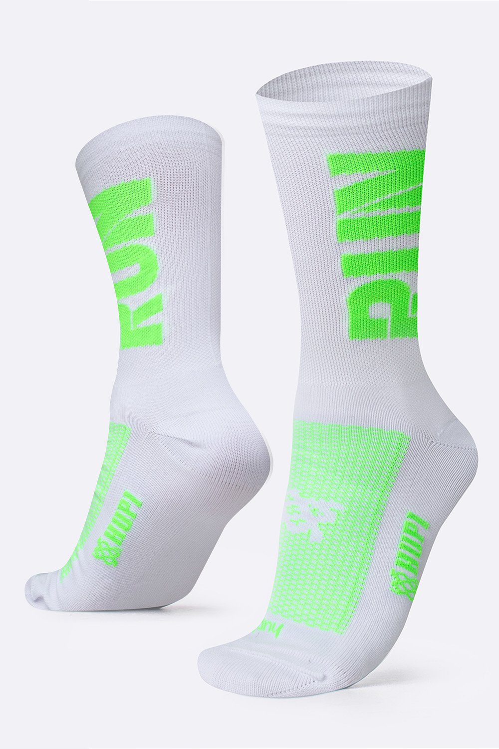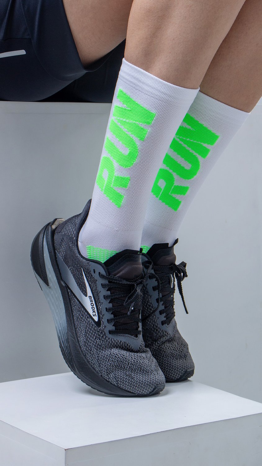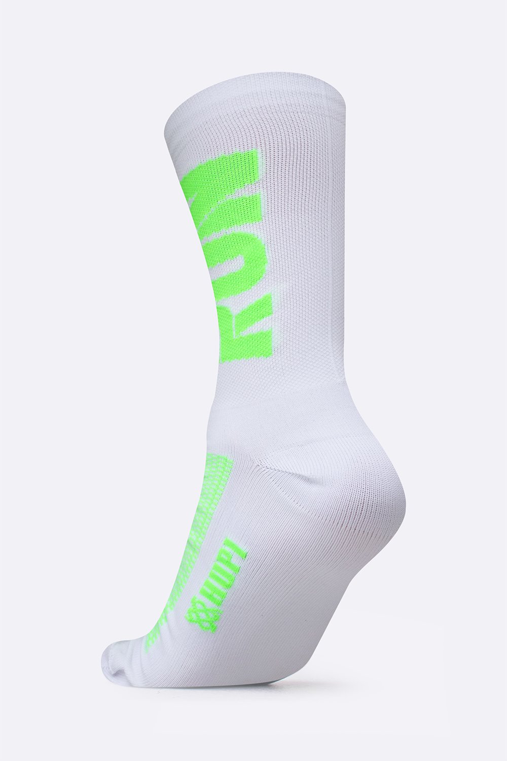 A Meia Corrida HUPI Run Branco/Verde combina tecnologia, conforto e estilo em uma peça essencial para quem leva a corrida a sério.