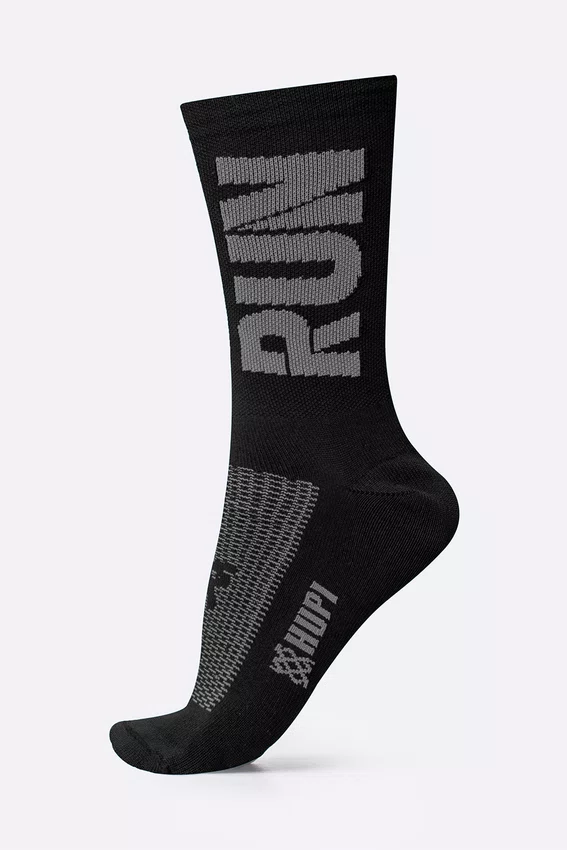 Materiais e Tecnologia da Meia Corrida HUPI Run Preto/Cinza