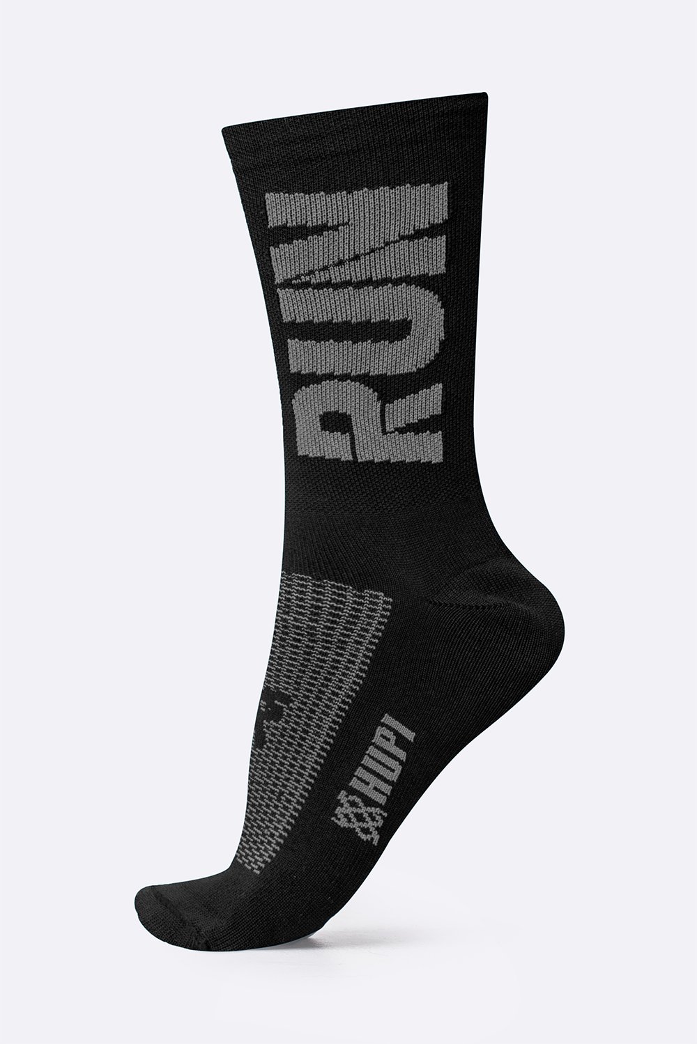 A Meia Corrida HUPI Run Preto/Cinza combina tecnologia e conforto com um visual versátil e funcional.