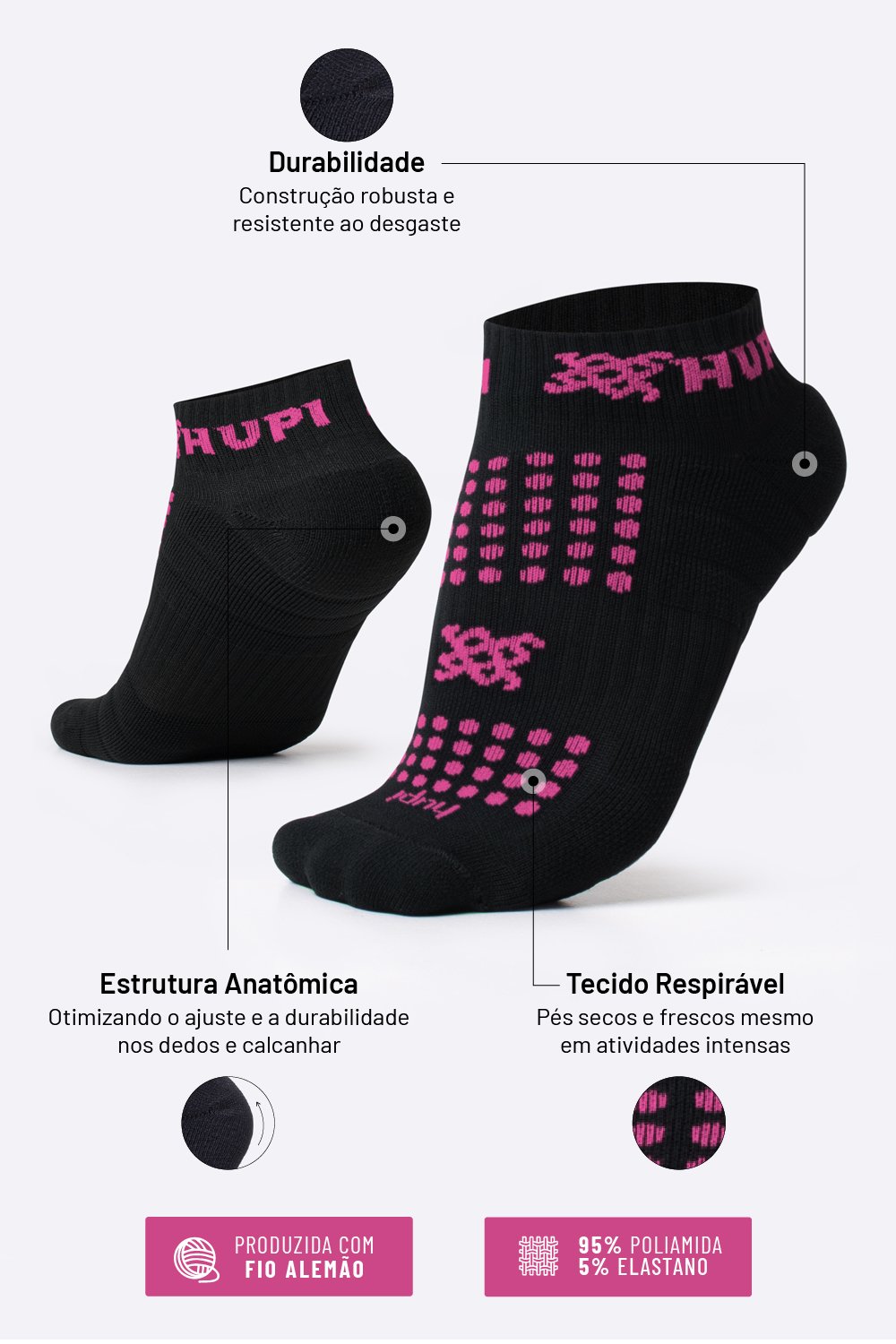 Meia Curta para Corrida HUPI - Running Pro Preto/Rosa