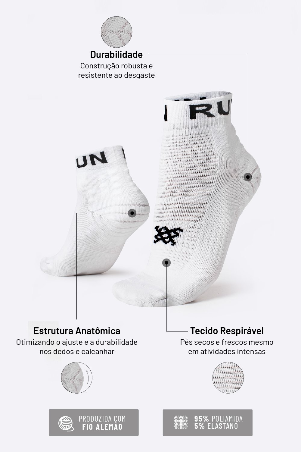 ✨ Bônus: Dê preferência a meias que não escorregam no tênis e que oferecem ajuste anatômico.