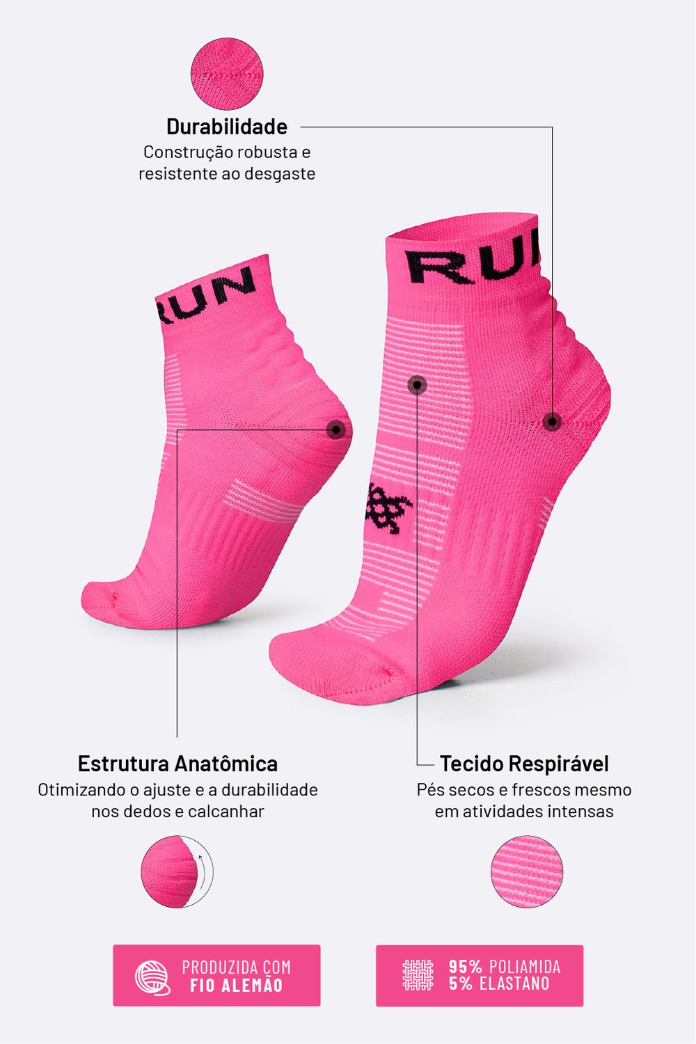 Especificações Técnicas da Meia Curta para Corrida HUPI Running Pro Run Rosa Neon LT