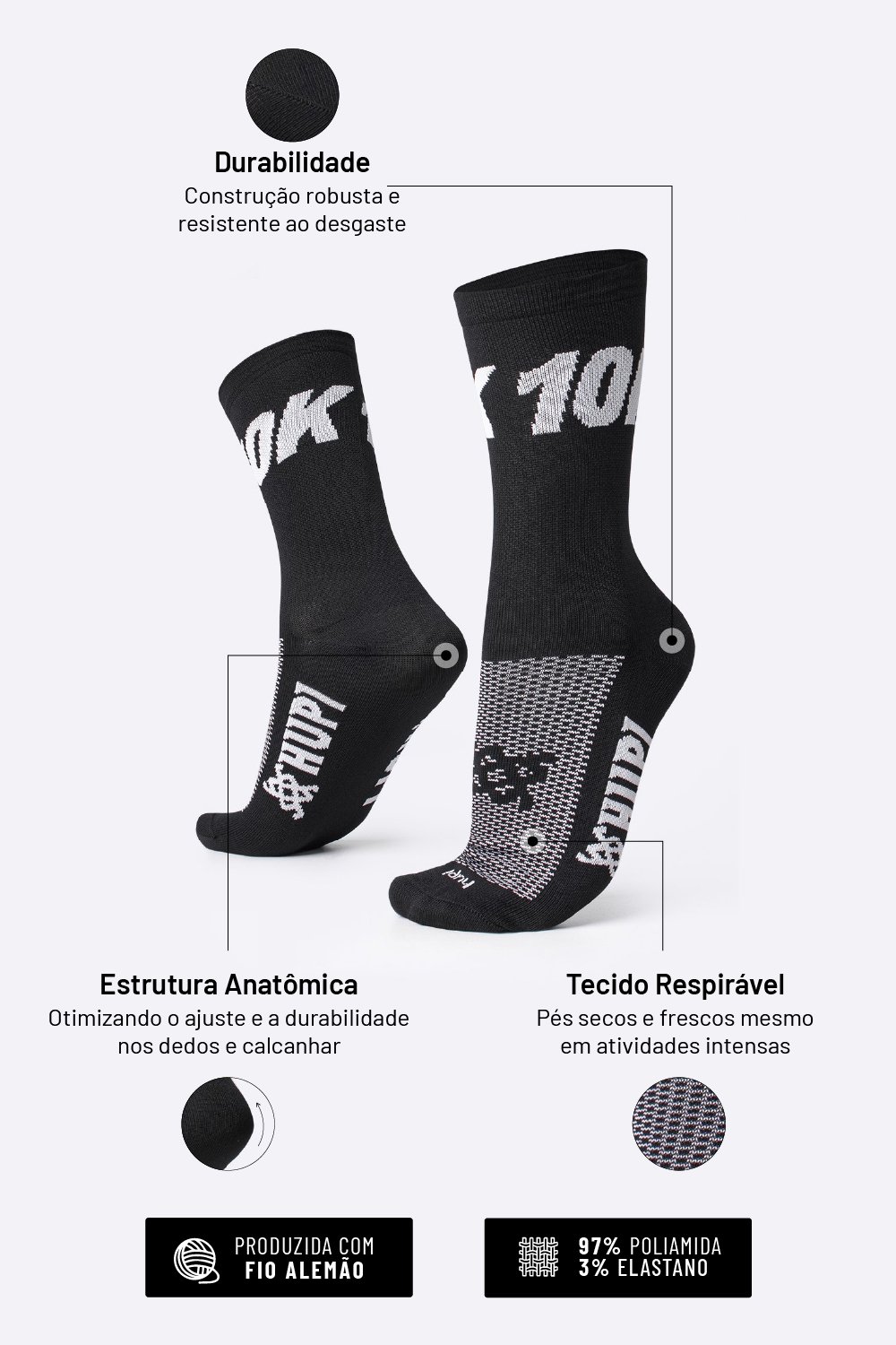 Meia HUPI 10K Preto - LT para pés menores 34-38