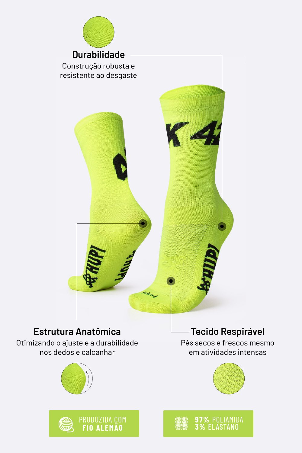 Meia HUPI 42k Ultra Amarelo Neon