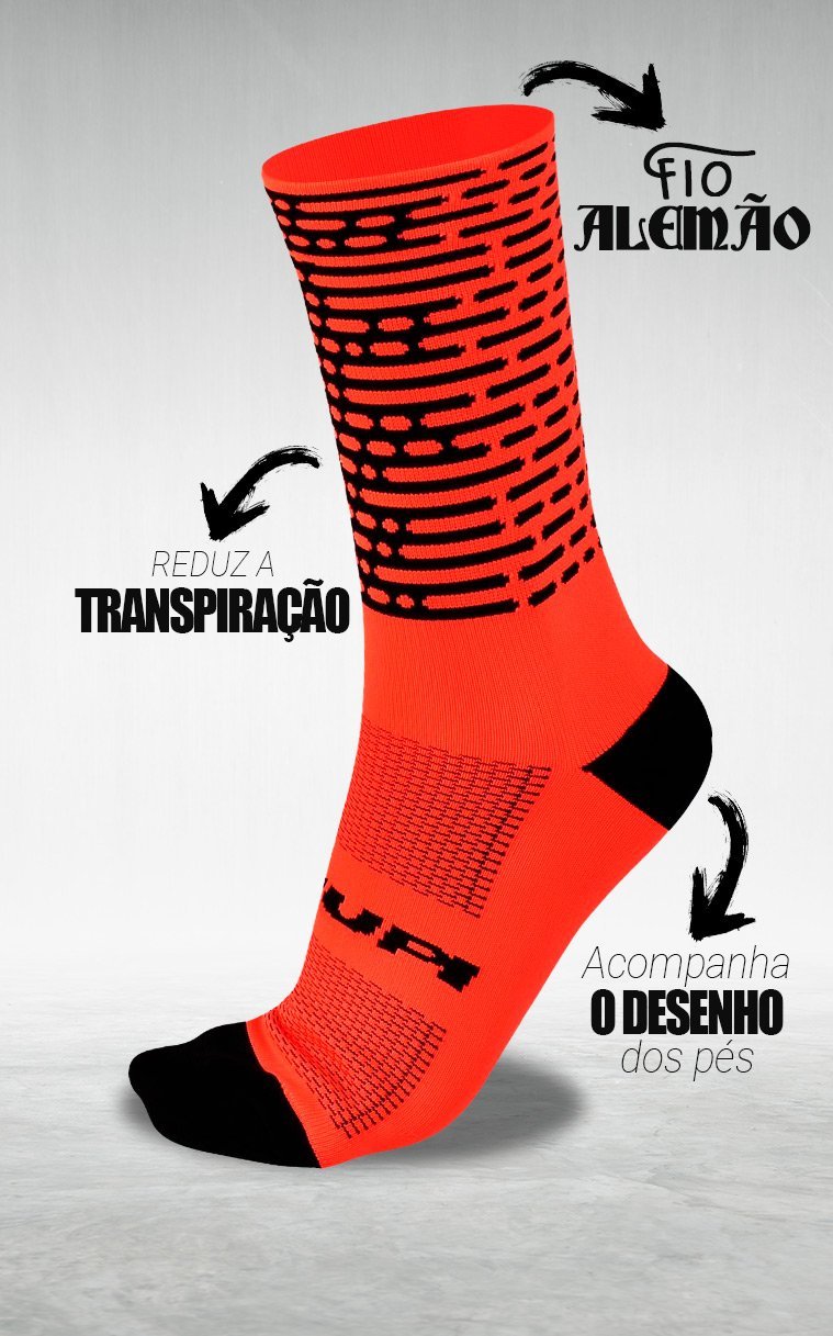 O principal destaque é o conforto, proporcionado pela transpiração que a meia oferece, deixando os pés secos e bem protegidos.