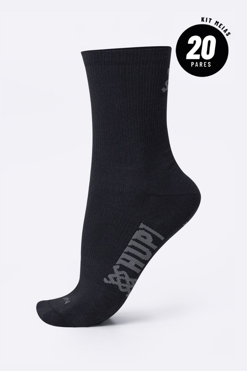 Meia HUPI Casual Cano Longo Algodão Preto - Kit 20 Pares Unissex