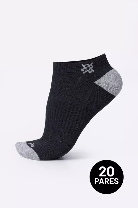 Meia HUPI Casual Soft Preto e Cinza - Kit 20 Pares Unissex