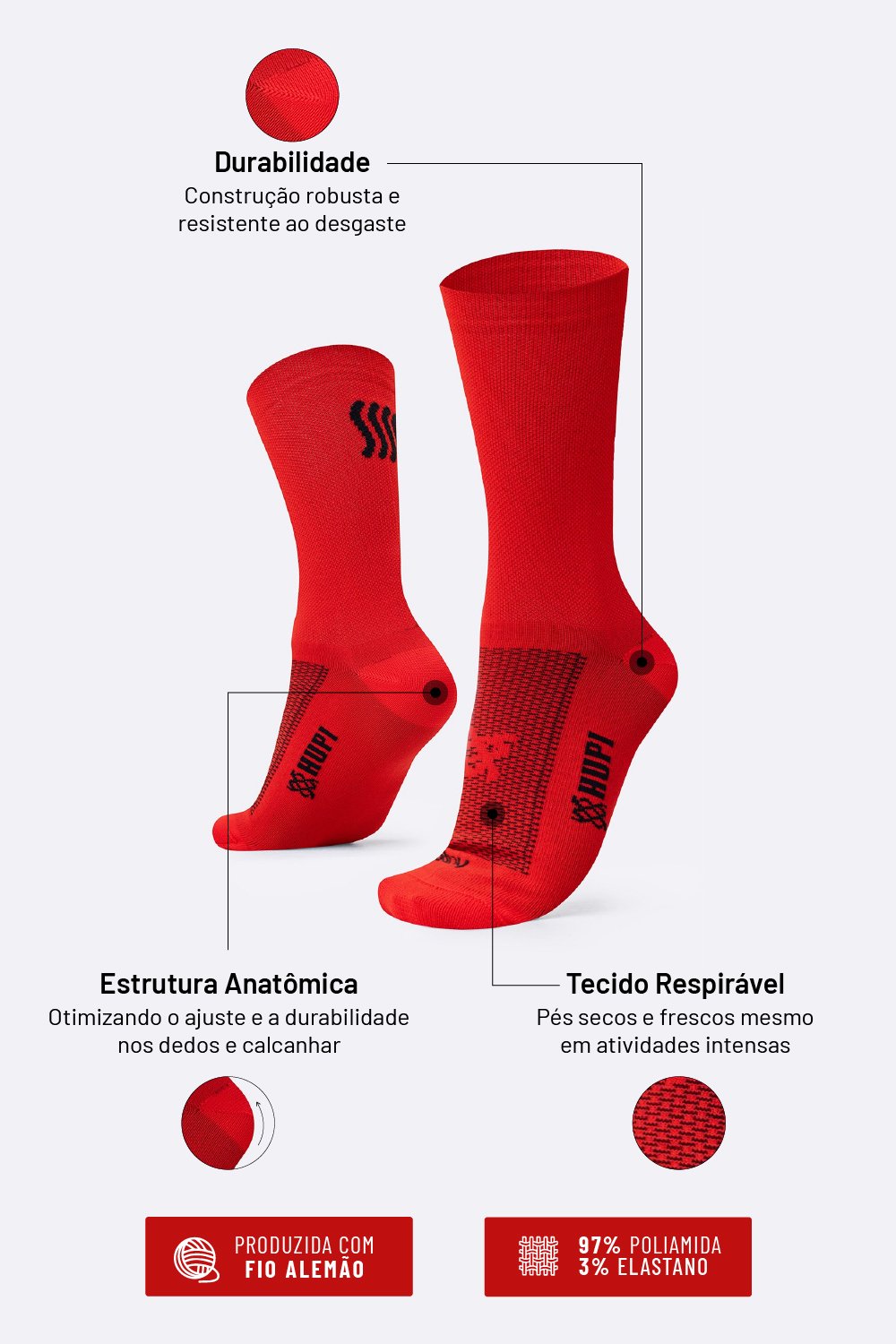 Na HUPI, cada detalhe importa. Por isso, nossas meias esportivas para corrida foram desenvolvidas com poliamida de alta qualidade e estrutura pensada para evitar bolhas, calos e desconfortos durante seus treinos e provas.