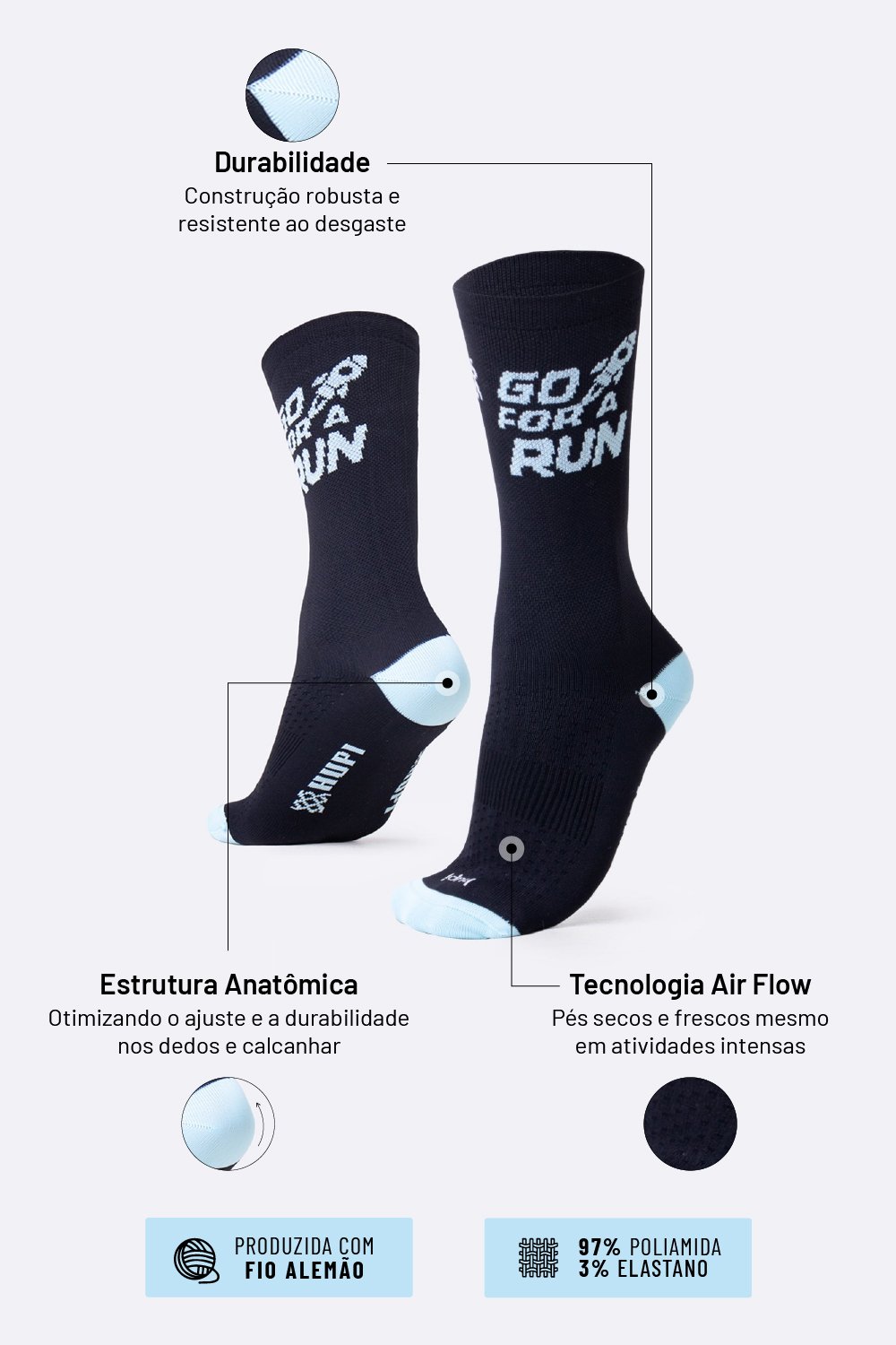 Por Que Escolher a Meia HUPI Go For a Run Preto/Azul?