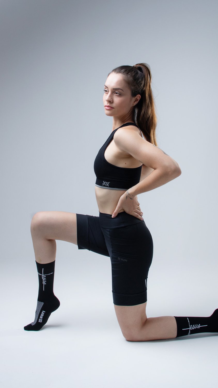 A Meia HUPI Jesus Preto/Branco - LT para pés menores 34-38 une alta tecnologia têxtil e um design moderno para garantir o máximo desempenho em cada treino.