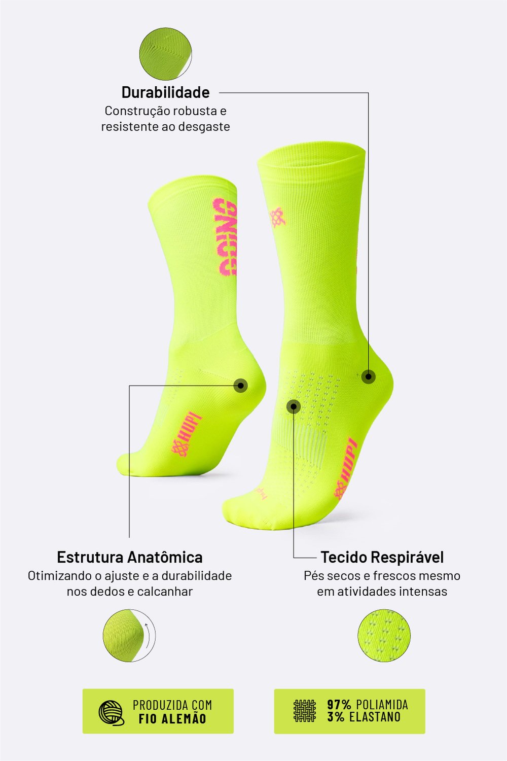 Especificações Técnicas da Meia HUPI Keep Going