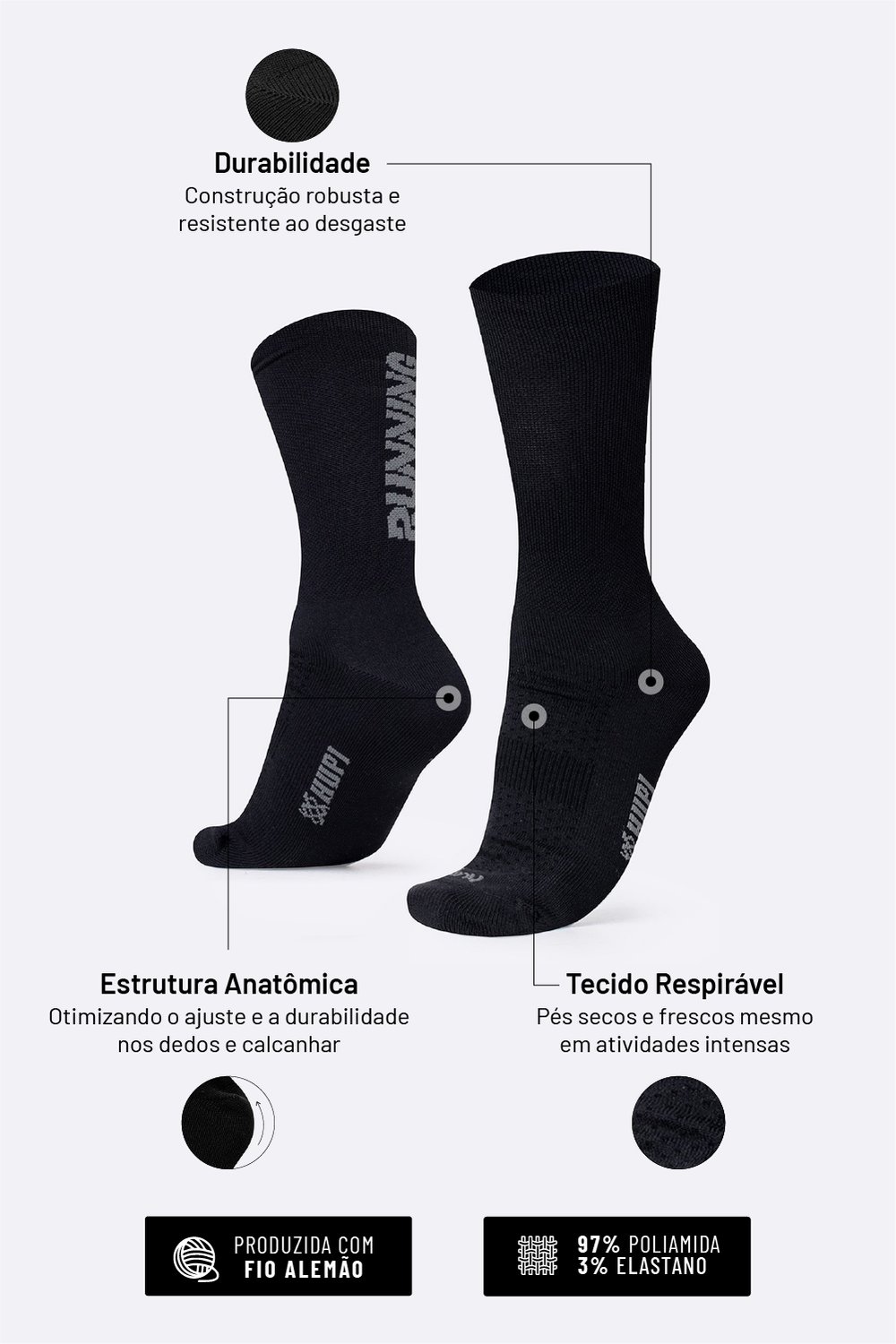 Tecnologias e Benefícios da Meia HUPI Keep Running Preto