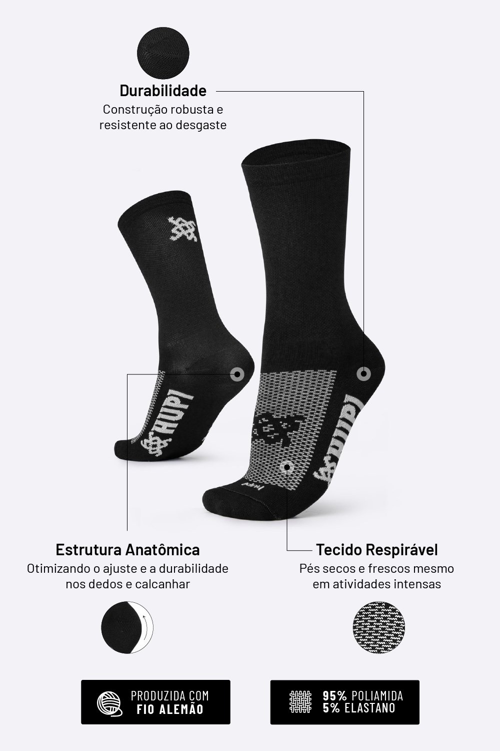 Diferente das meias comuns que apenas esticam além do limite, a versão Plus da HUPI Run entrega ajuste anatômico preciso, suporte firme e respirabilidade contínua.