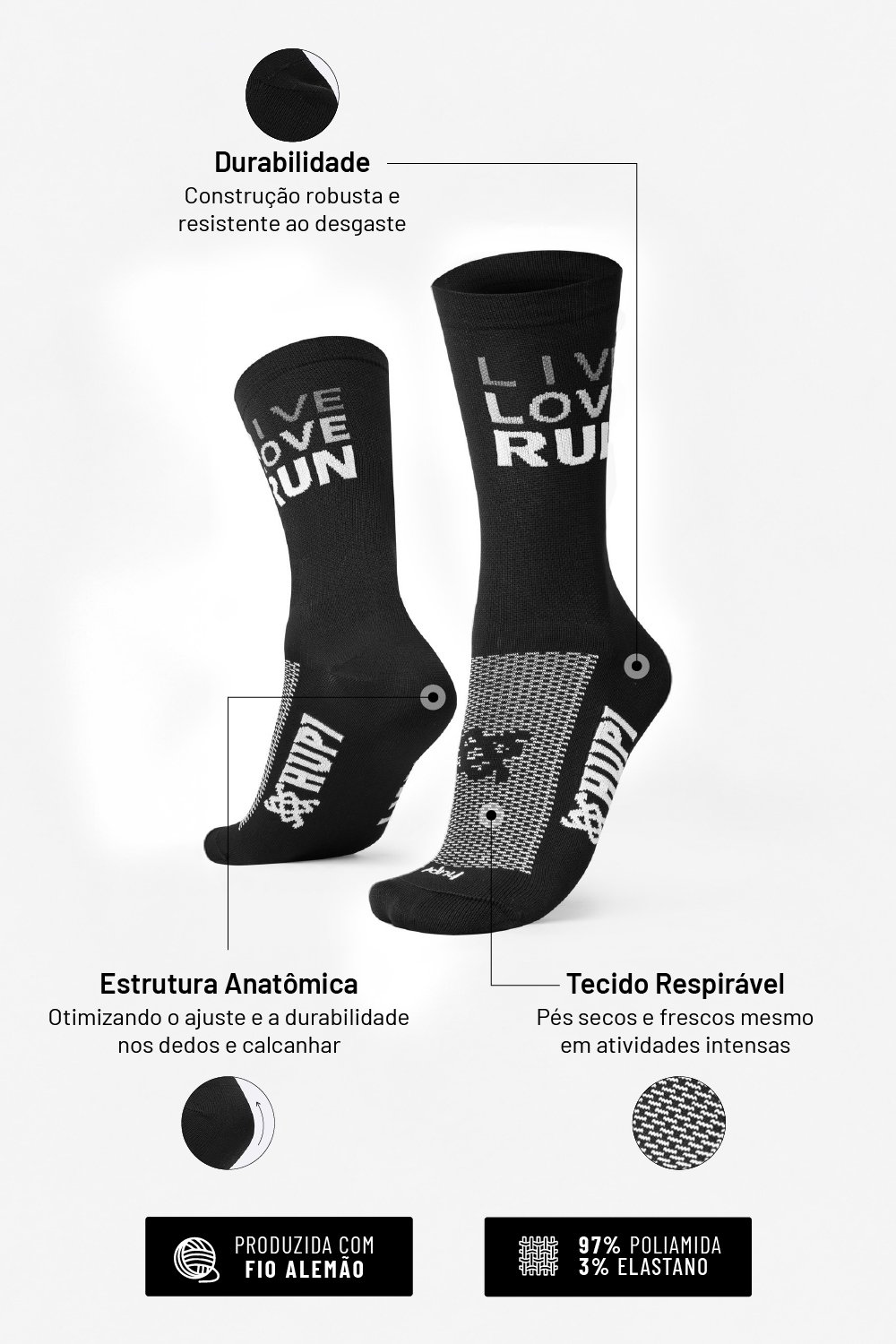 Meia HUPI Live Love Run Preto - LT para pés menores 34-38