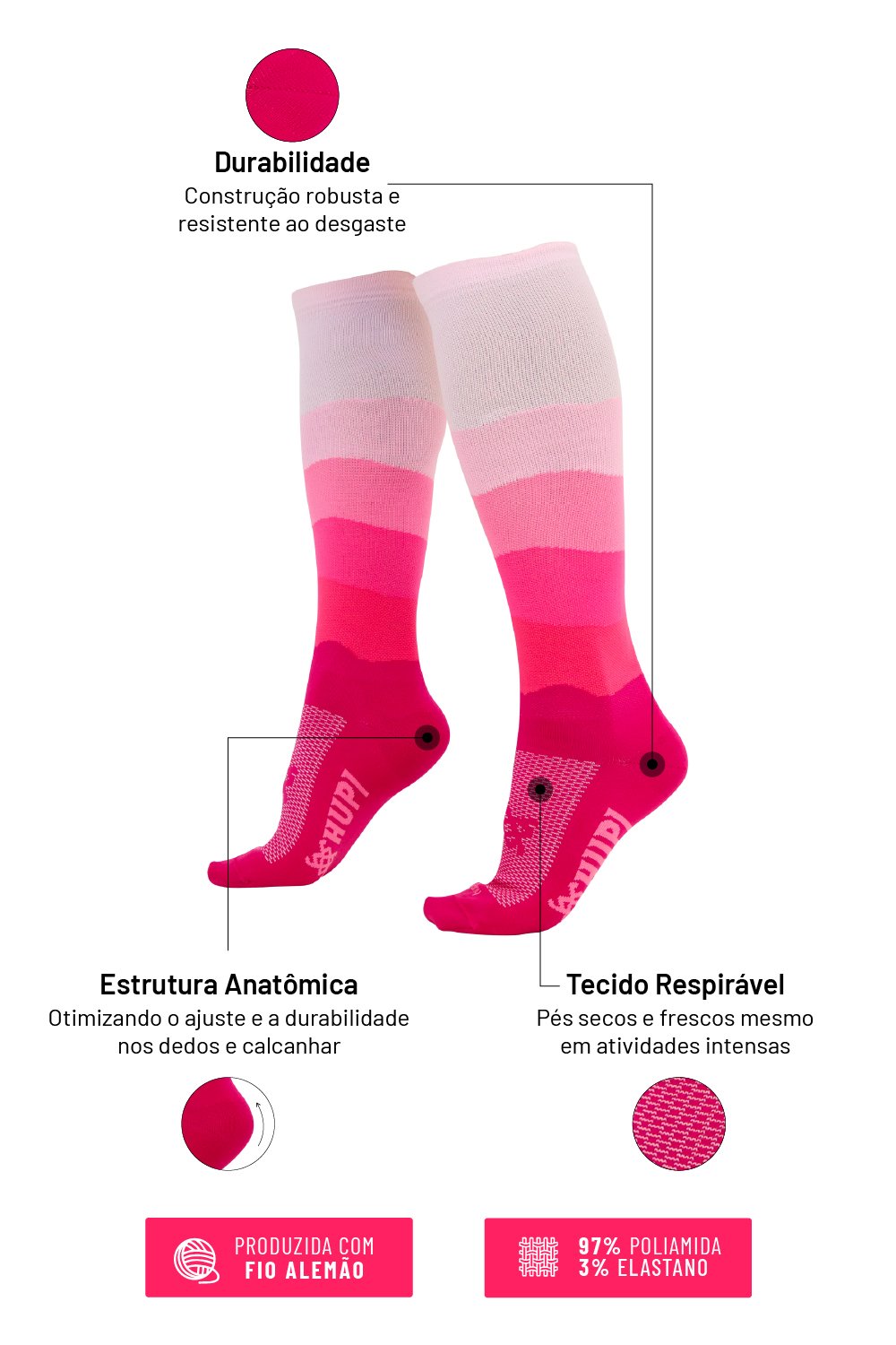 A Meia HUPI Longa Colors Rosa foi desenvolvida para quem busca conforto, tecnologia e visual moderno durante os treinos e competições.