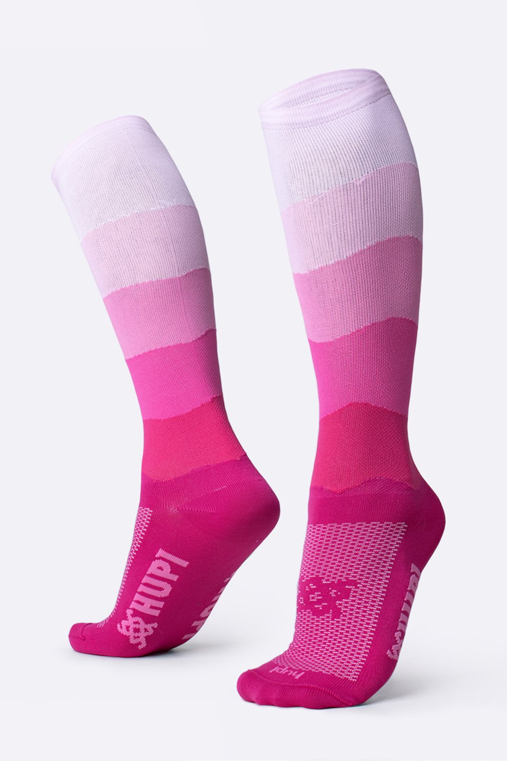 A Meia HUPI Longa Colors Rosa é confeccionada em tecido de alta performance com poliamida de origem alemã e elastano, proporcionando ajuste anatômico, alta durabilidade e excelente controle de umidade.
