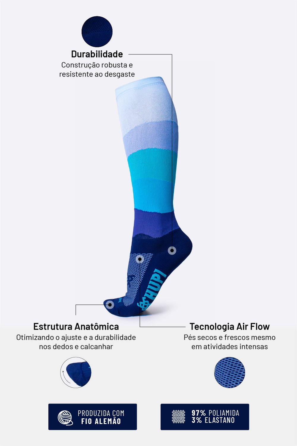 Meia para Corrida e Ciclismo HUPI - Meia HUPI Longa Oceano