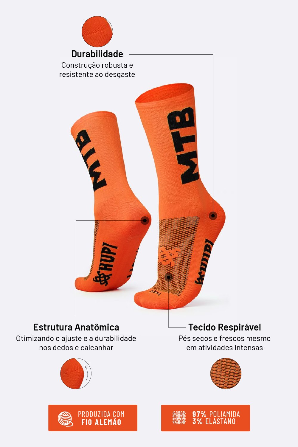 Meia HUPI MTB 2 Laranja