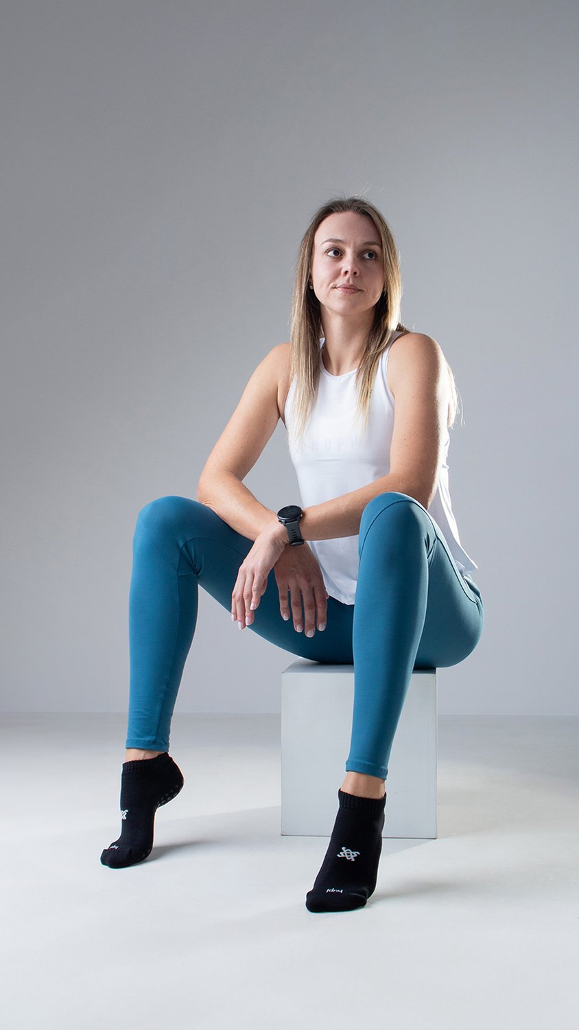 Meia antiderrapante para pilates e yoga, com ajuste anatômico, ventilação localizada e fio de poliamida premium