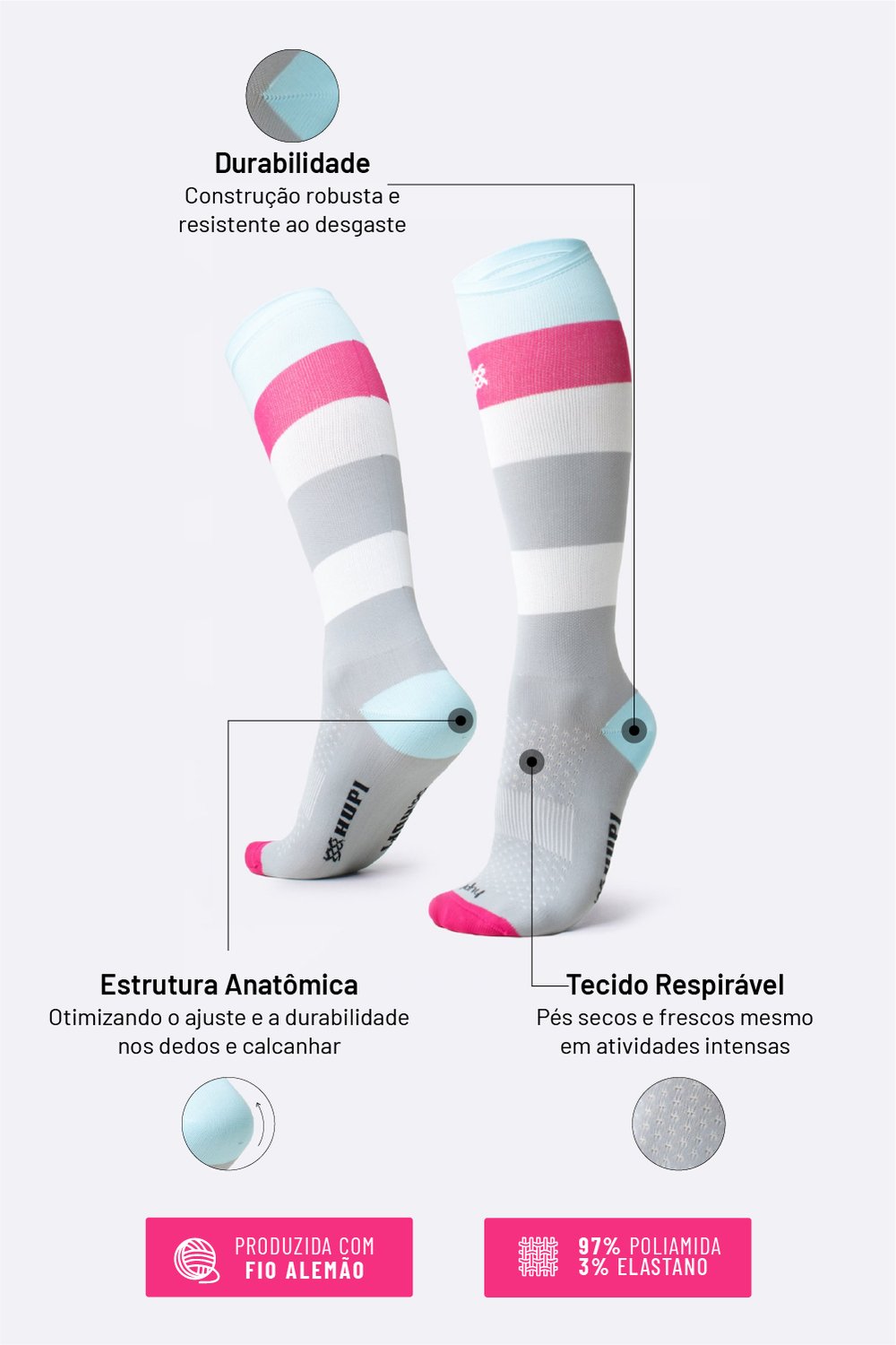 Tipo: Meia para corrida com aproximadamente 30cm (cano longo)