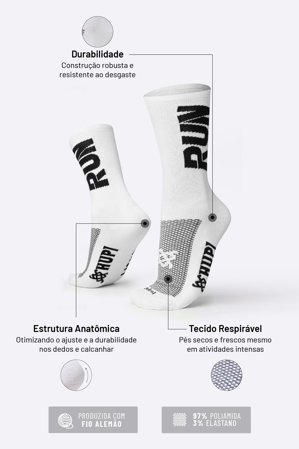 Na HUPI, cada detalhe importa. Por isso, nossas meias esportivas para corrida foram desenvolvidas com poliamida de alta qualidade e estrutura pensada para evitar bolhas, calos e desconfortos durante seus treinos e provas.