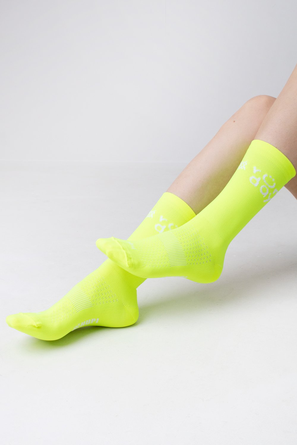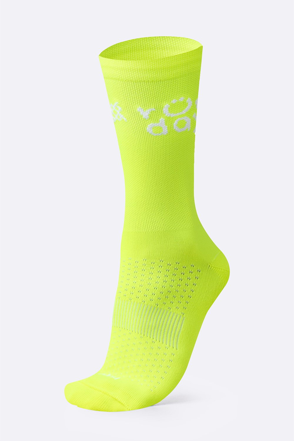 A cor vibrante em amarelo neon transmite energia e atitude, deixando claro que essa não é uma meia qualquer, mas sim uma parceira que acompanha você em cada passo.