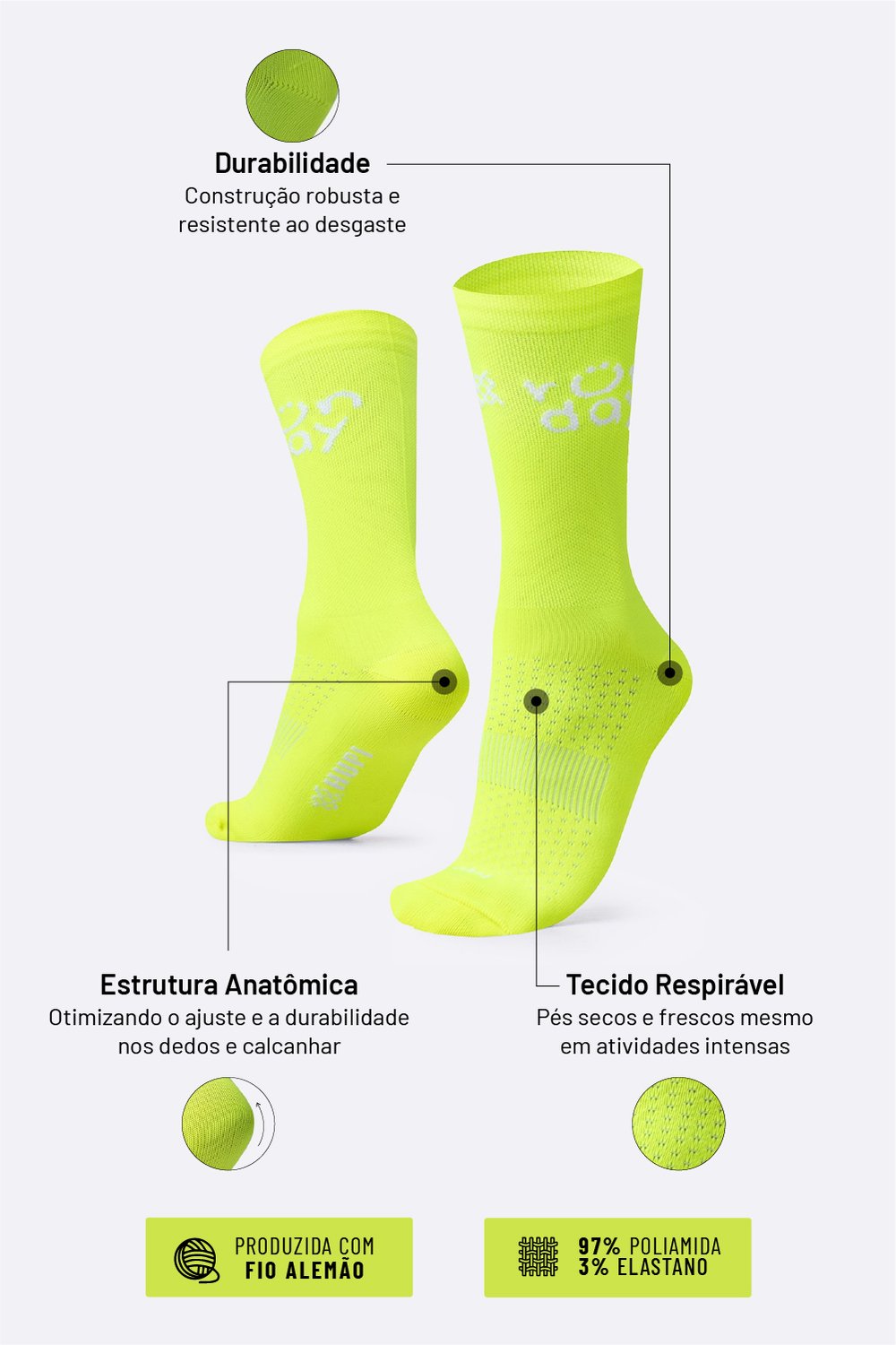 Para quem quer uma meia de corrida que realmente faz diferença na performance, a Run Day Amarelo Neon é a escolha certa.