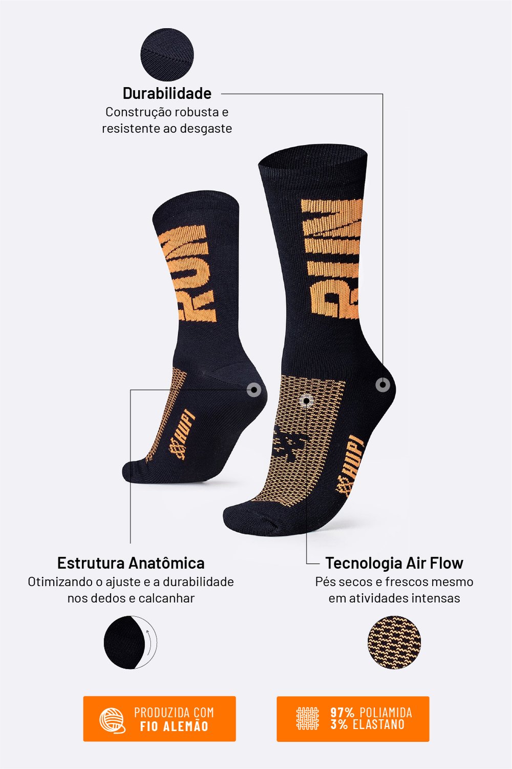Tecnologias e Benefícios da Meia HUPI RUN Preto/Laranja