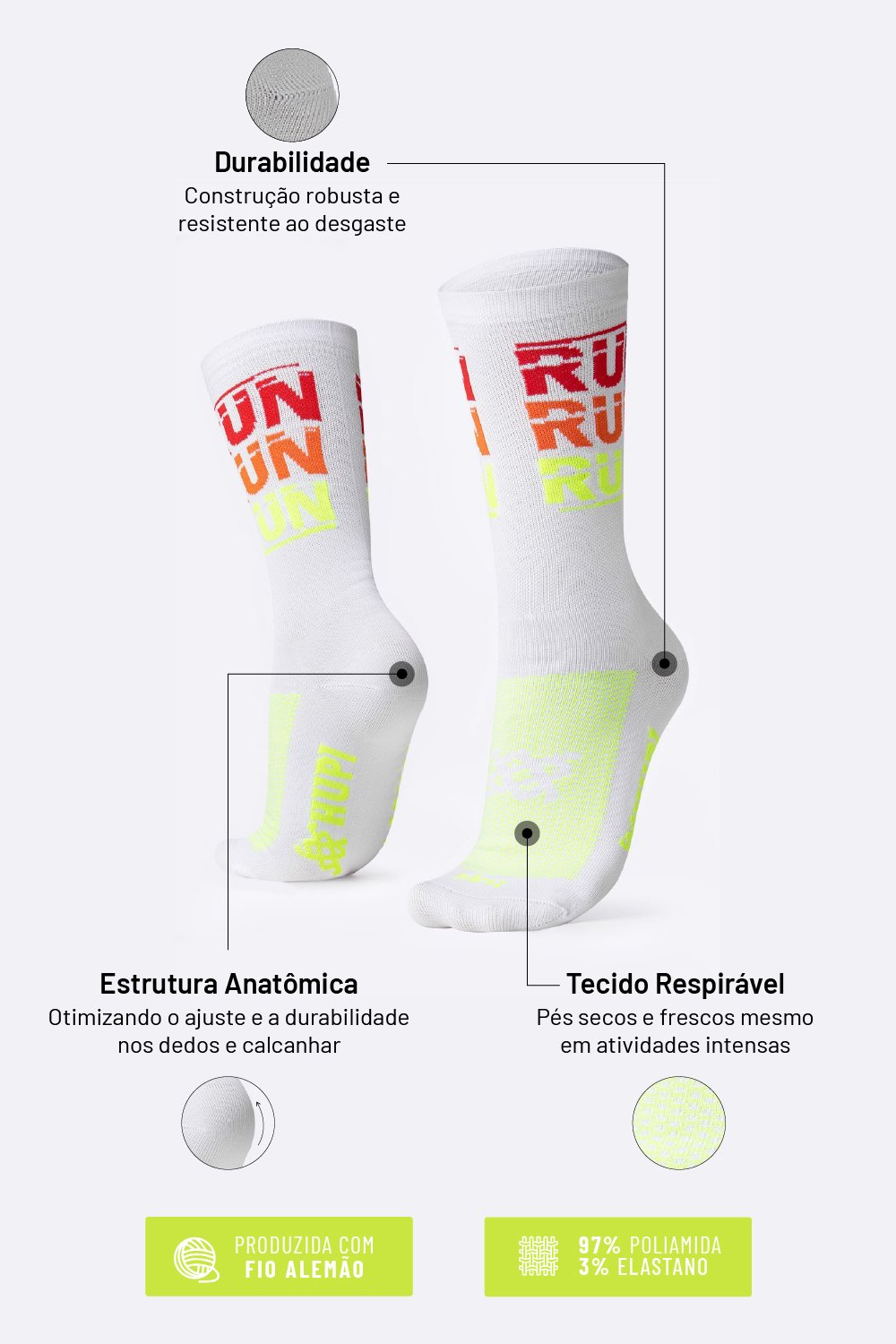 Meia HUPI Run Run Run Branco - LT para pés menores 34-38