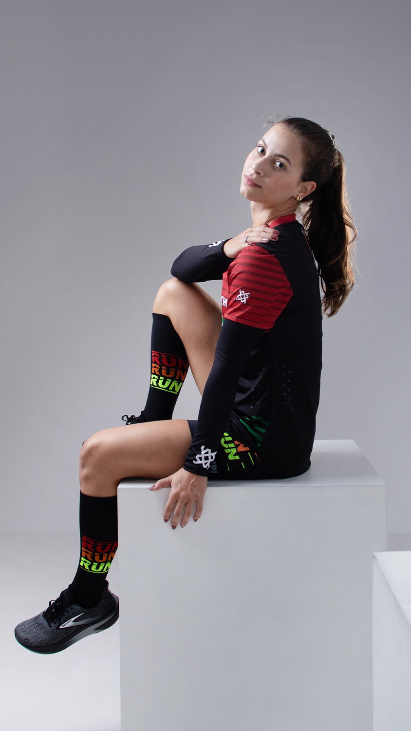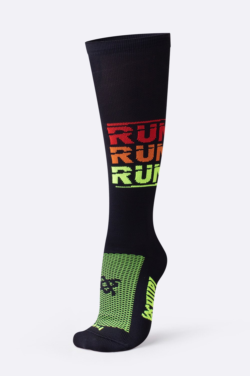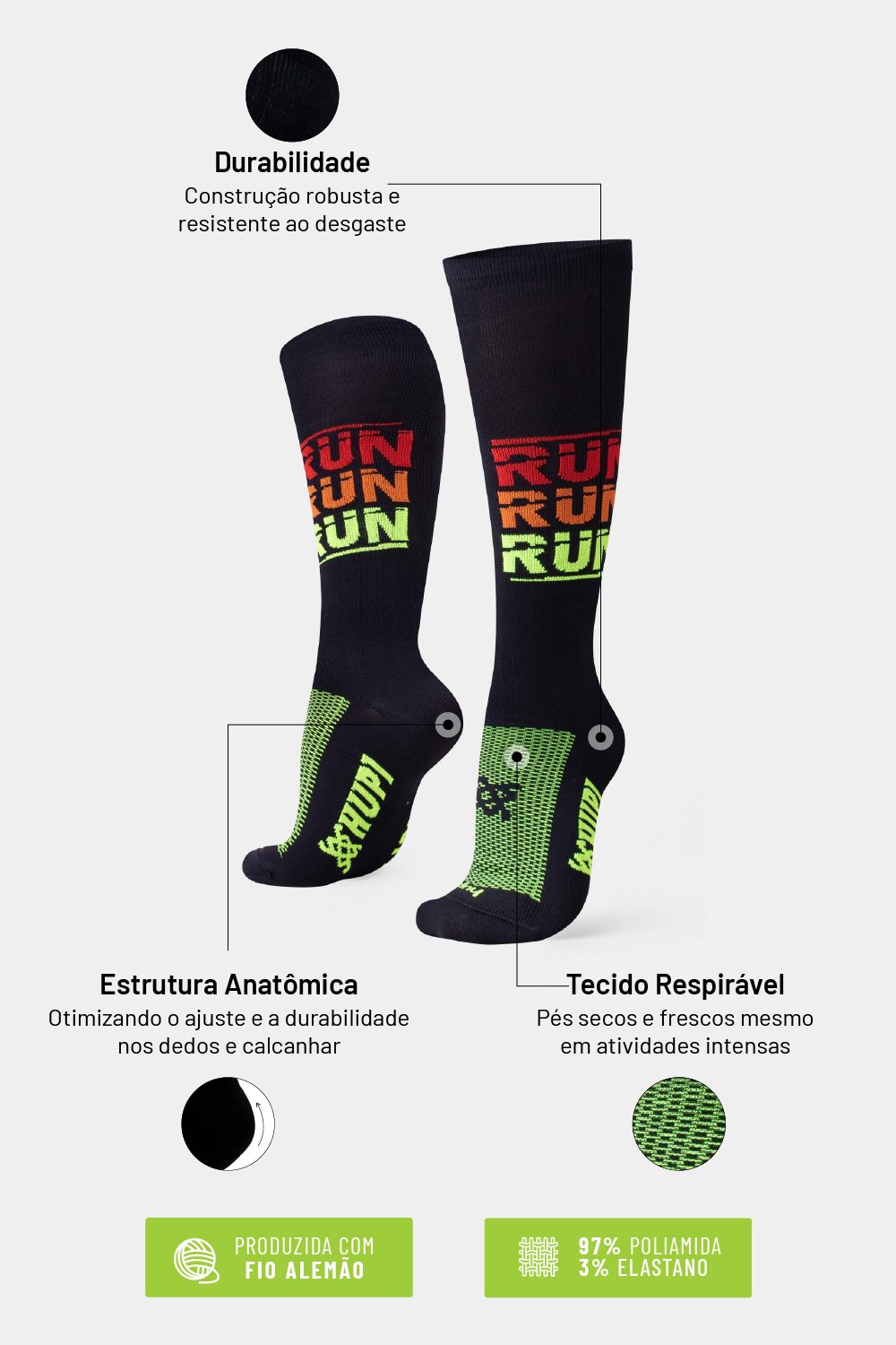 Adquira já a sua e eleve sua performance com a Meia HUPI Run Run Run Preta Longa!