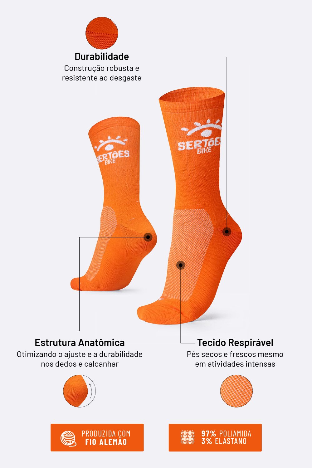 Perfeita para quem vive intensamente e valoriza estilo e conforto no dia a dia. Com um visual esportivo e moderno, essa meia combina tons vibrantes de laranja e branco, acompanhando você em corridas, pedaladas, treinos, ou até no look casual.