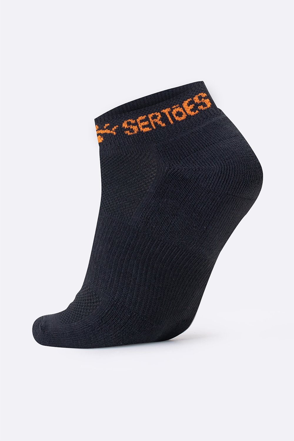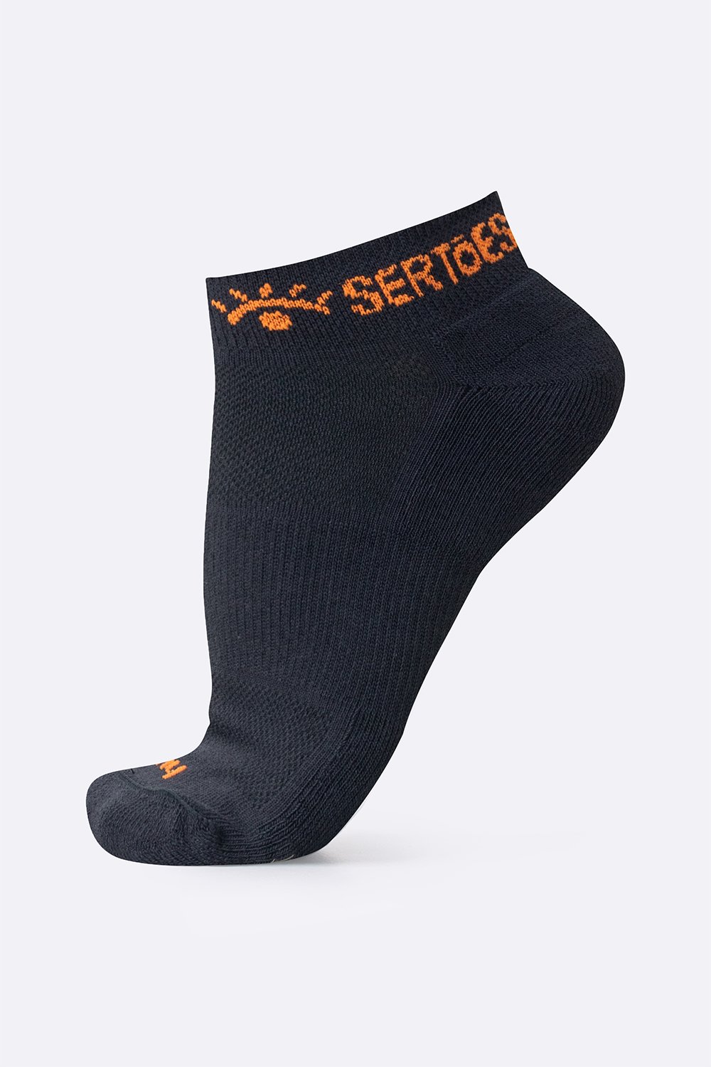 Design Moderno e Versátil: Com um estilo curto e cores vibrantes em preto e laranja, essa meia combina facilmente com qualquer look, proporcionando um visual casual e descontraído.