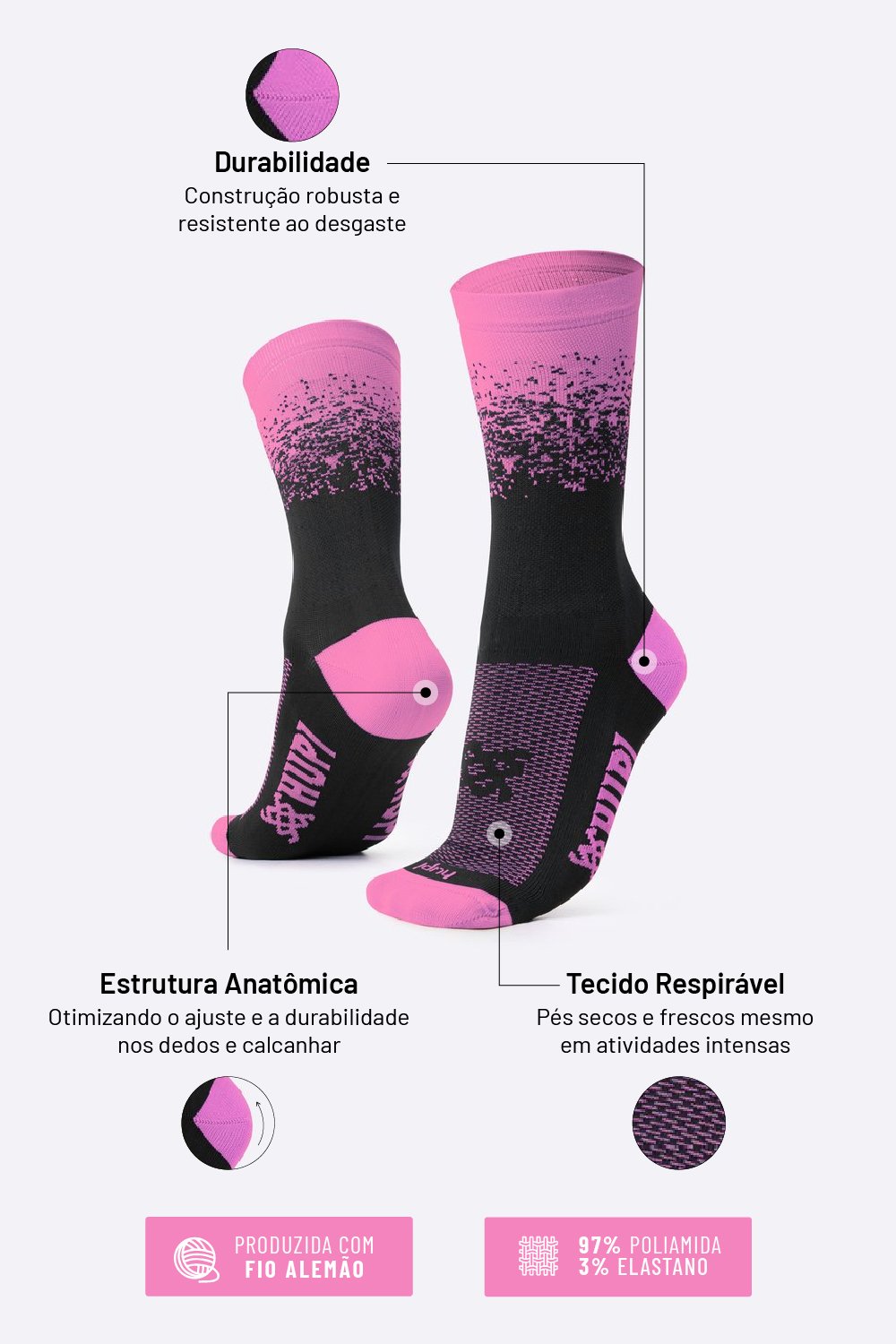 Praticar esportes com conforto e máximo desempenho é o seu objetivo, e também o nosso. Por isso a meia HUPI apresenta diversos destaques que fazem dela um item fundamental.