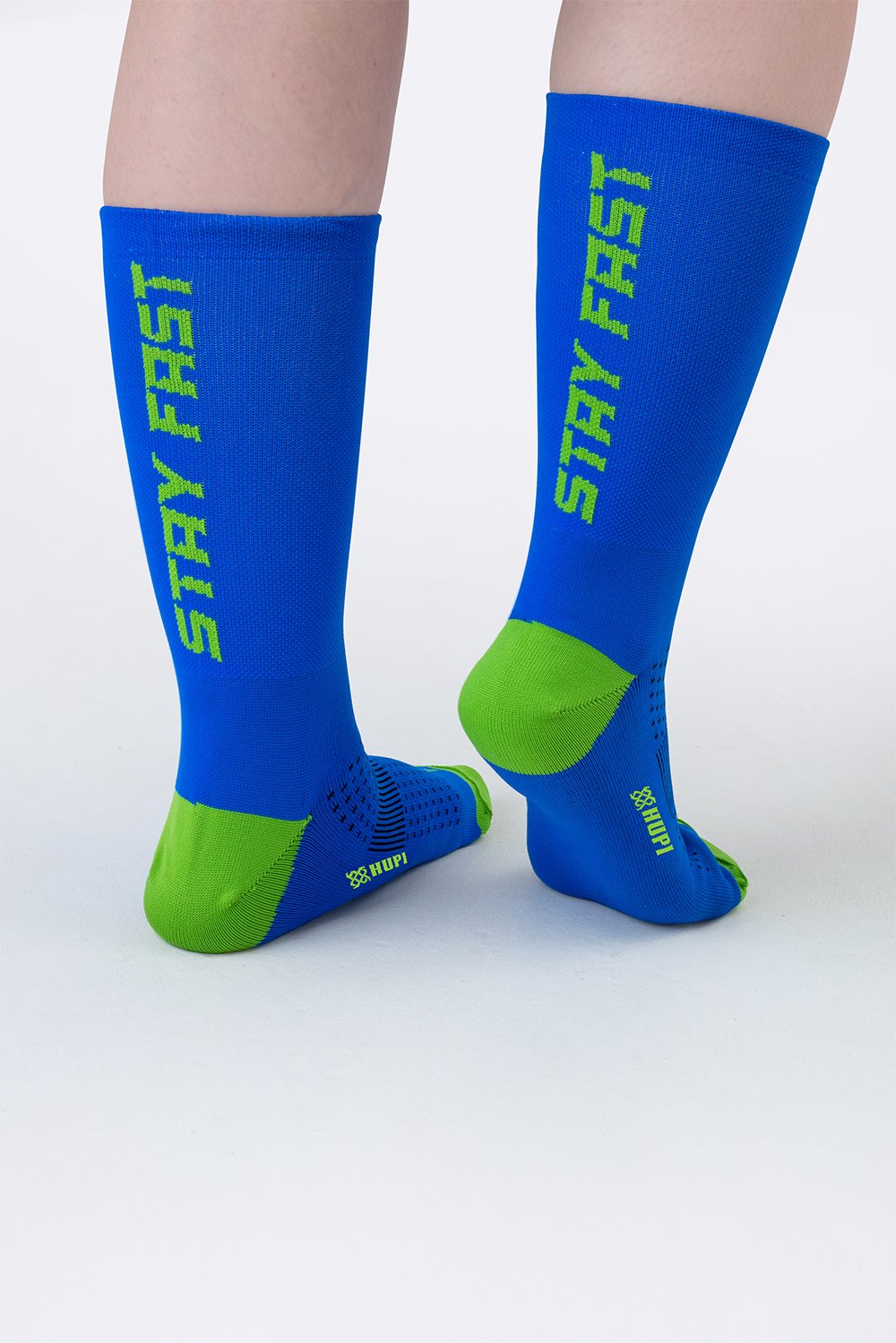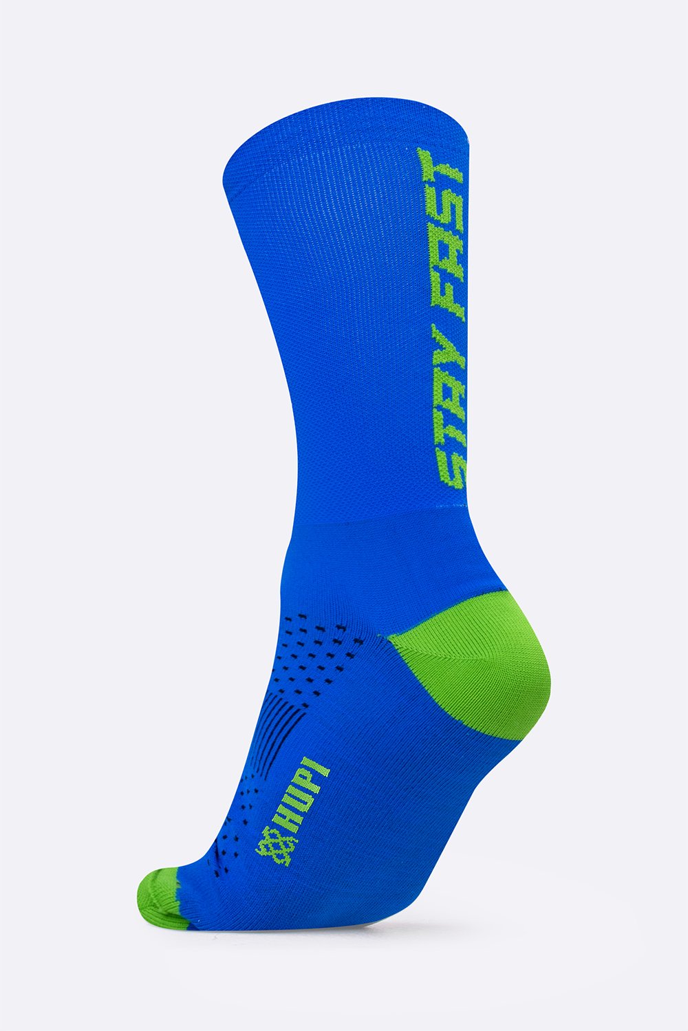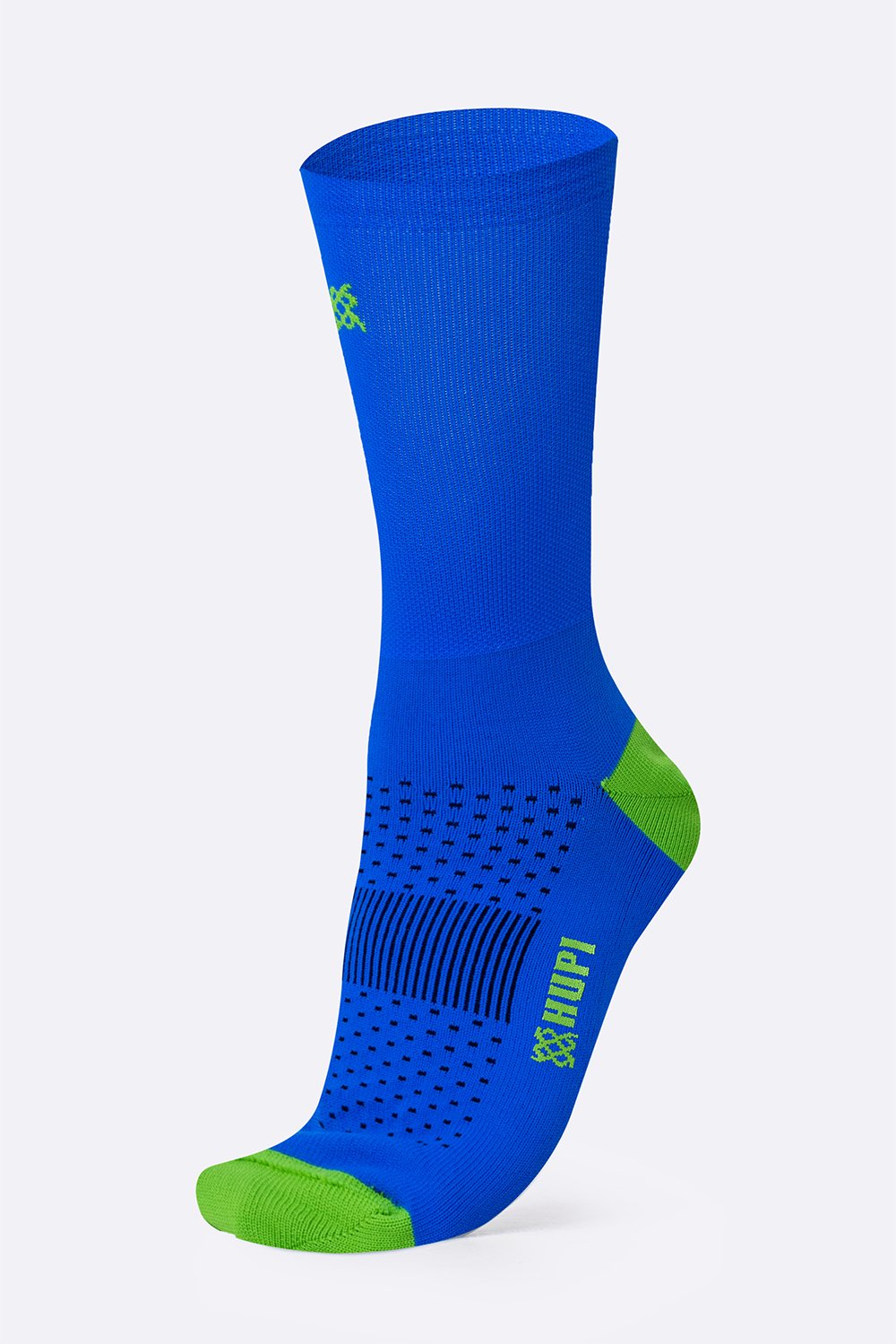 A Meia HUPI Stay Fast combina ajuste preciso, ventilação de precisão e proteção contra bolhas.