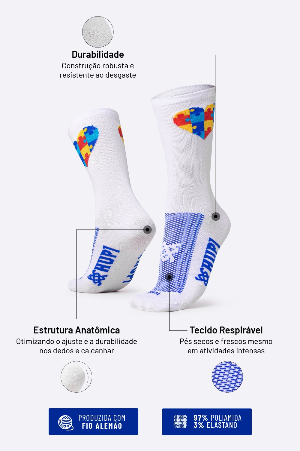 Meia HUPI Tea Autismo Heart Branco Adulto Feminina